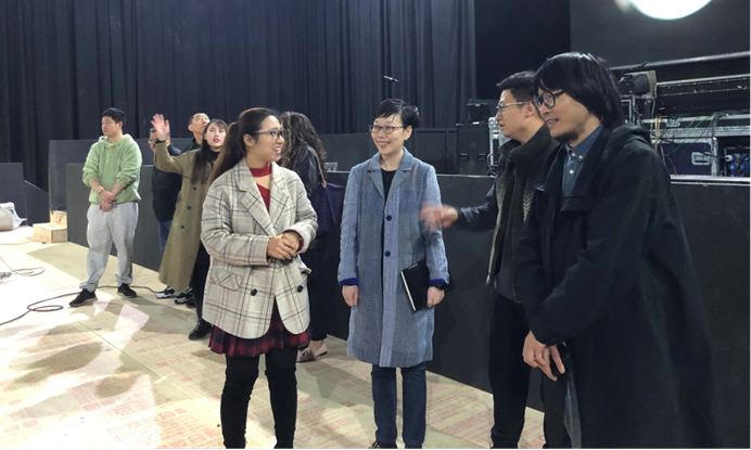 浙江天瀚文化发展股份有限公司是一家具有独立承揽大型综艺节目舞美设计与制作的一流企业,在业内具有良好的口碑及知名度。一行人在浙江天瀚文化发展股份有限公司负责人丁卫的带领下参观了公司的演播厅、现场灯光操控区、以及工作区,了解了大型文艺演出的舞台搭建、灯光音响安装调试、节目编排、场地管理、后勤保障等工作环节,对舞台艺术设计与制作专业未来的学生定向培养及教学建设有了新的认识。