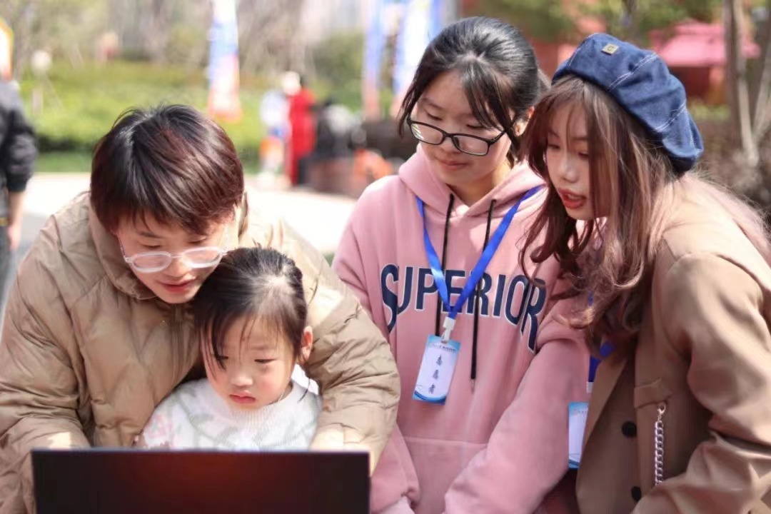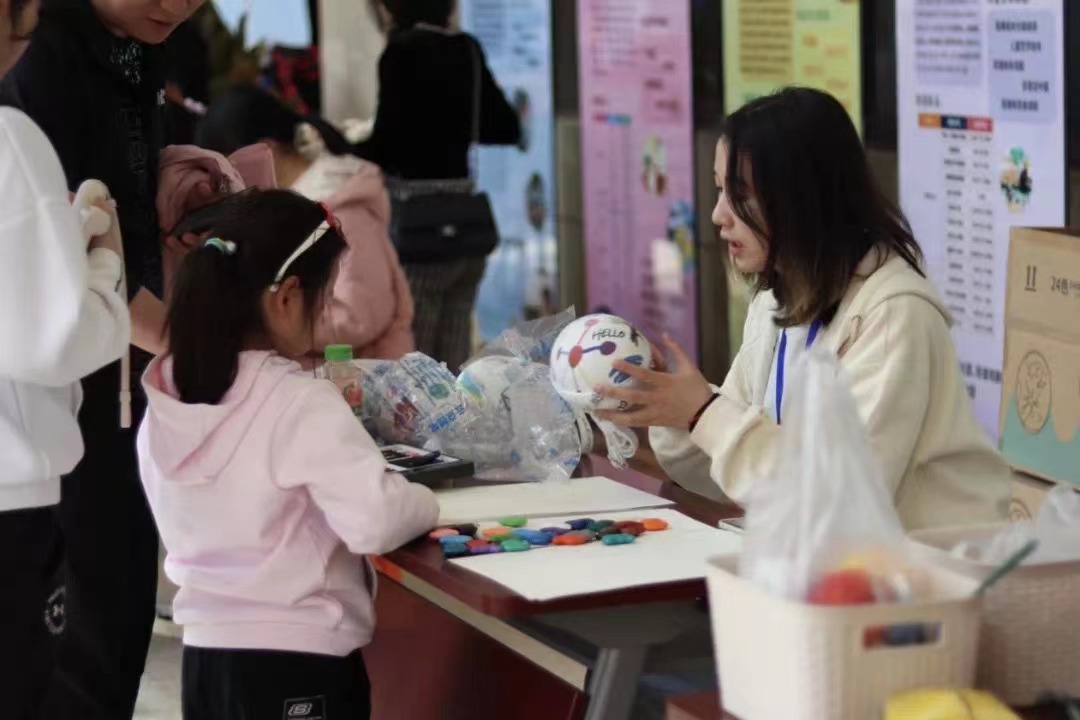 演教学院志愿者同学充分运用自身专业优势做好服务引导工作,在活动咨询区域,热情迎接游客们的到来,耐心细致地为家长答疑解惑。在创意泡泡秀、非遗文化体验市集等游乐项目区域,也能够捕捉到志愿者积极活跃的身影,她们寓教于乐、启迪着孩子们的心智。她们不辞辛劳的服务博得一致好评。