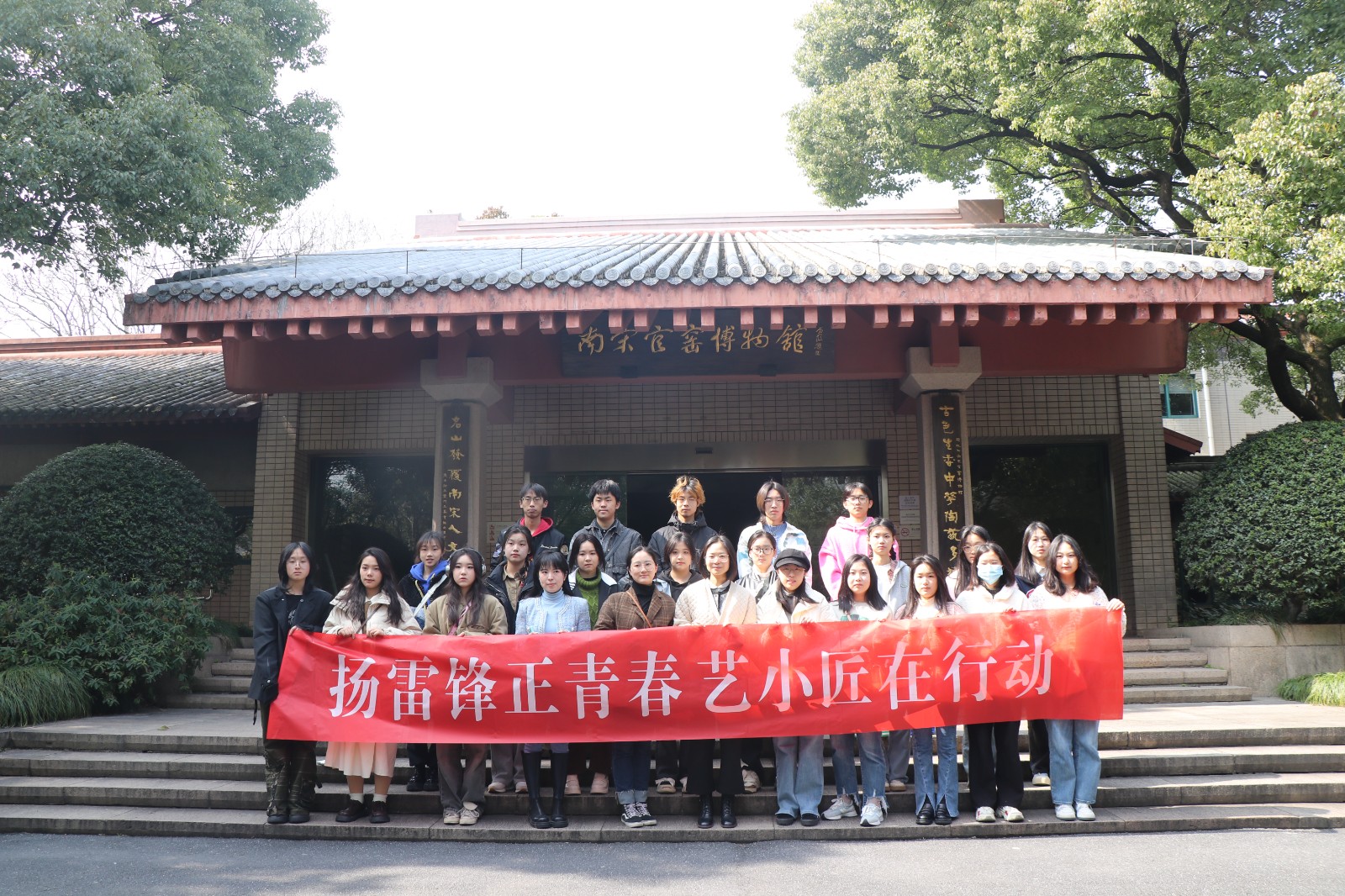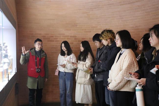 3月4日,“艺小匠”志愿者服务队来到南宋官窑博物馆开展陶艺研学活动。进入南宋官窑历史陈列馆,讲解老师从瓷器的历史发展、宋代瓷器的风雅之美和出土展品三个方面进行了详细的讲解,让“艺小匠”纷纷赞叹精致的瓷器和高超的制瓷技艺。