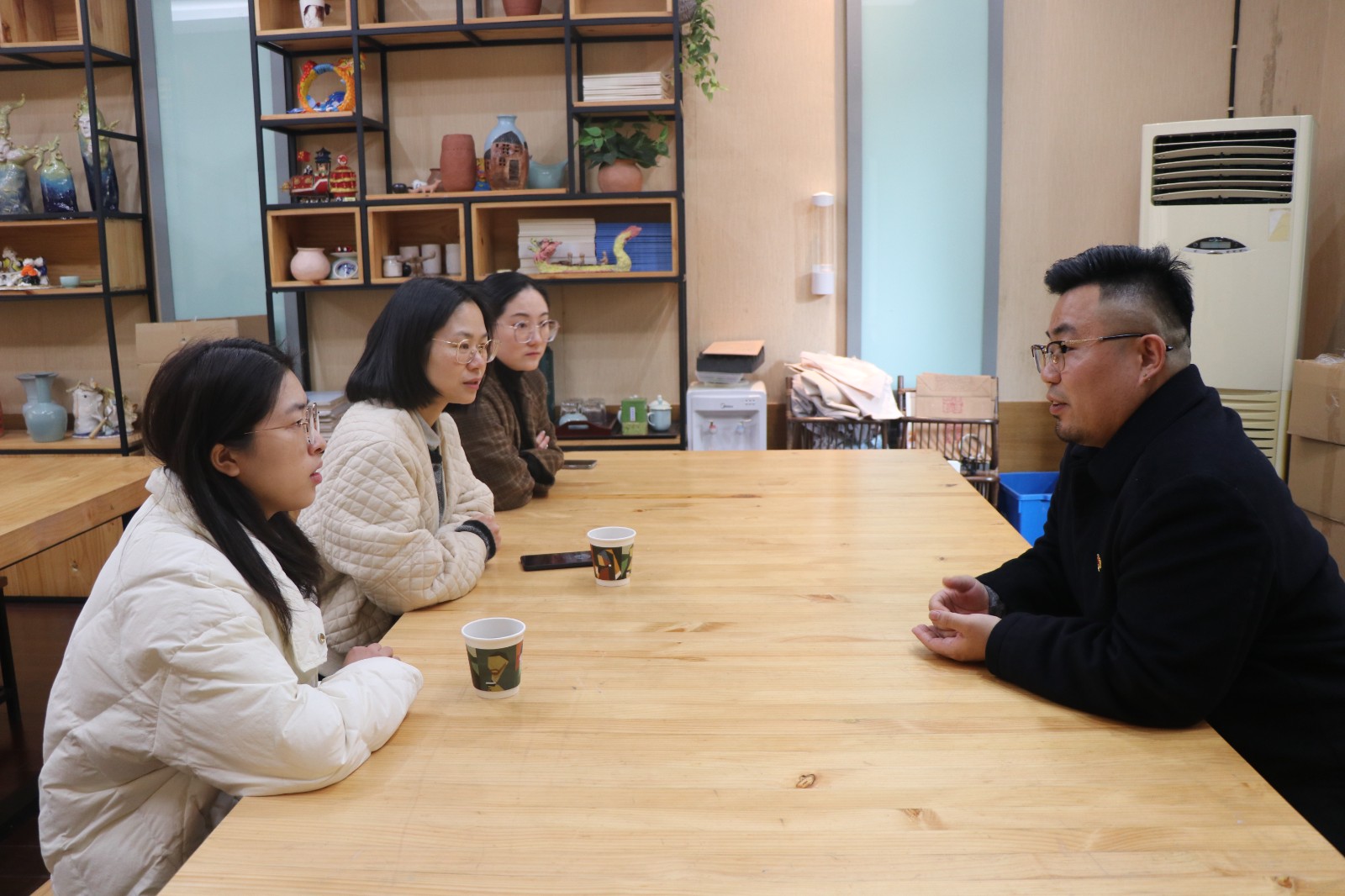 走进陶艺中心,接受了基础的培训后的“艺小匠”加入博物馆陶艺教学活动,教授体验者用揉、搓、压、捏等方式创作出独特样式,感受陶泥与水的交融,体会陶泥和指尖的温度。活动中,双方就长期志愿者活动合作达成初步合作意向,持续推动学雷锋志愿服务活动和非遗传承走深走实。