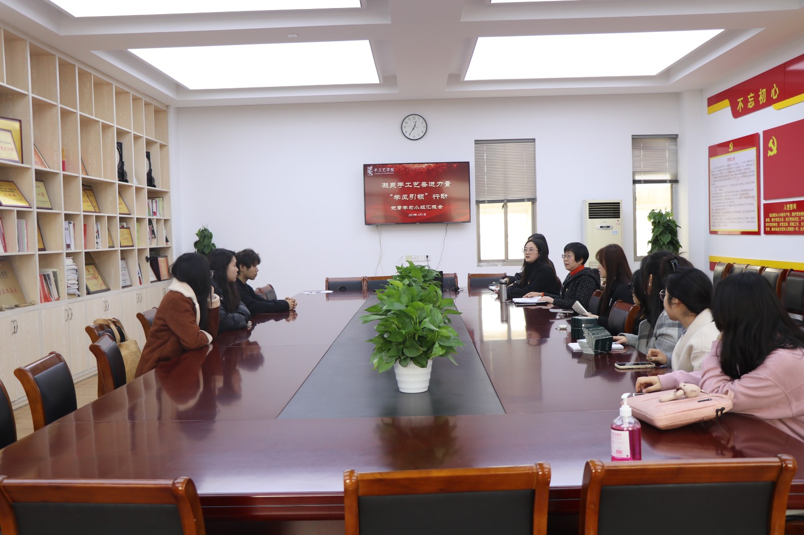 为深入学习宣传贯彻党的二十大精神,3月1日,手工艺学院开展党章学习小组“学”风引领行动汇报会。会议由学生党支部书记胡墨智丽主持,手工艺学院党总支专职副书记王筱芽,组织员钱杏芬,辅导员戚幸怡,各班党章学习小组组长参会。