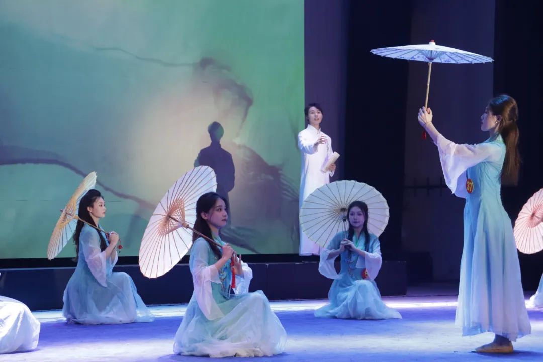 《致青春》音乐的变化与不同风格的转化,同学们演绎出不同情景来诉说青春的故事。