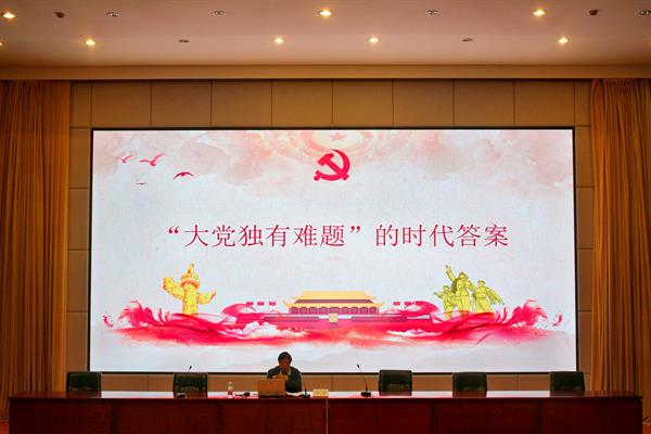 徐芳以《“大党独有难题”的时代答案》为题,结合主题教育相关要求,就大党独有难题的历史经验和时代内涵、提出大党独有难题的时代原因、破解大党独有难题的时代答案等三个方面与现场教师进行分享交流。