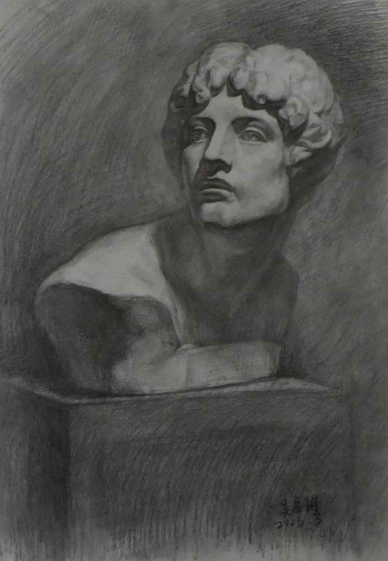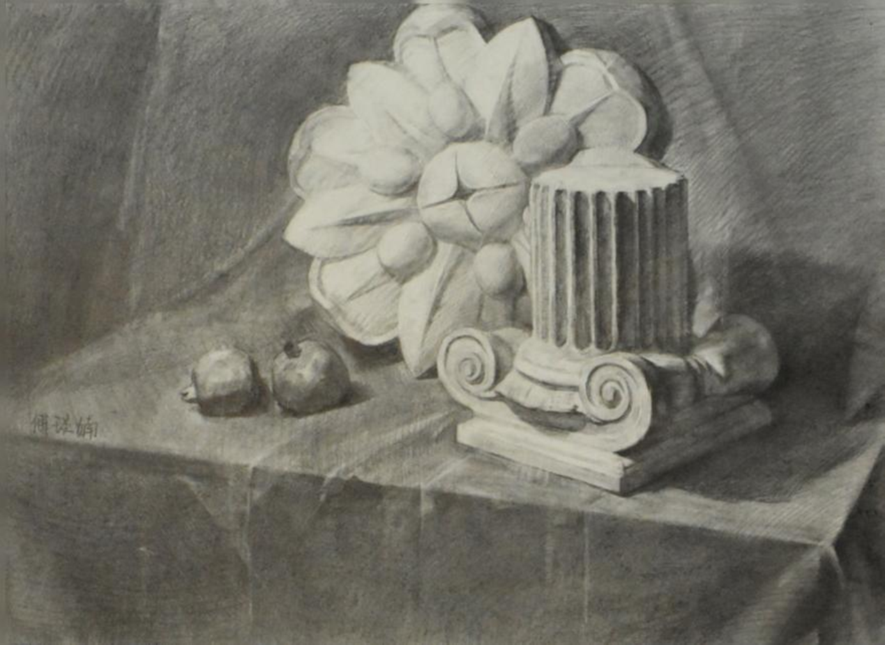 学生课堂石膏写生作品