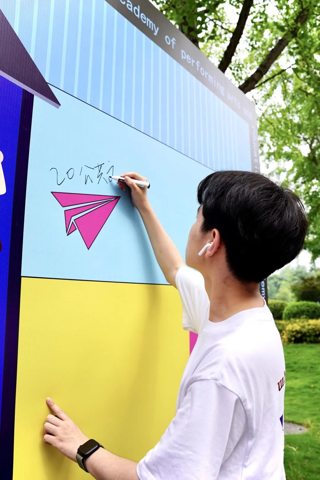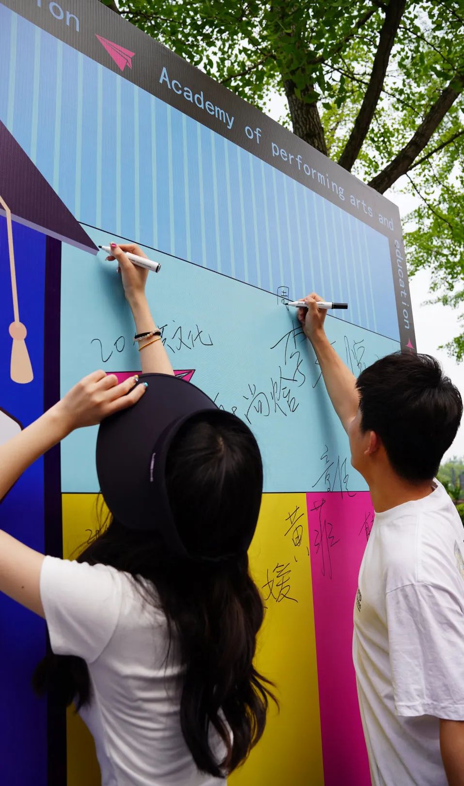 5月30日下午,演教学院门前多了一道靓丽的风景线——“星耀演教 逐梦未来”毕业签名墙。在签名墙前,我院2023届毕业生用一笔一画,定格大学时光,在繁华相送的季节,致敬永远风华正茂的青春。