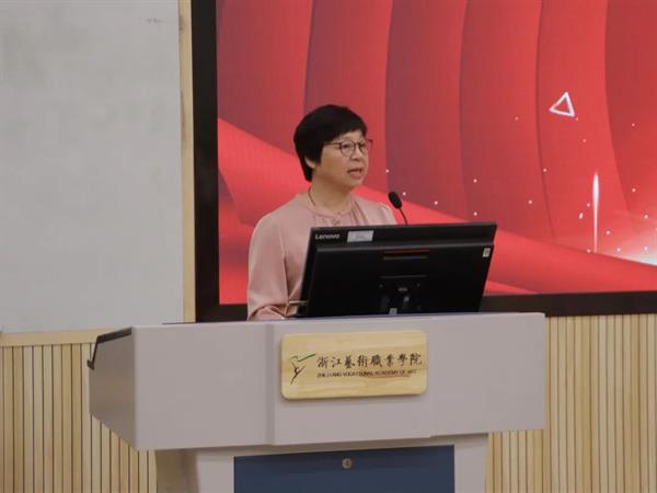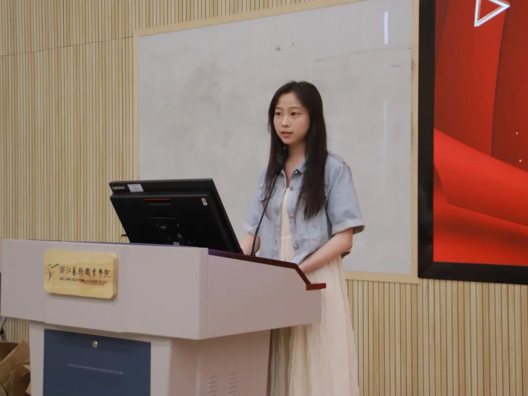 毕业生党员代表20定向1班许愿宣读毕业生文明离校倡议书。她倡议同学们继续保持浙艺学子的优良传统,争当文明的使者,展示积极向上的毕业生形象,为大学生活画上圆满的句号。
