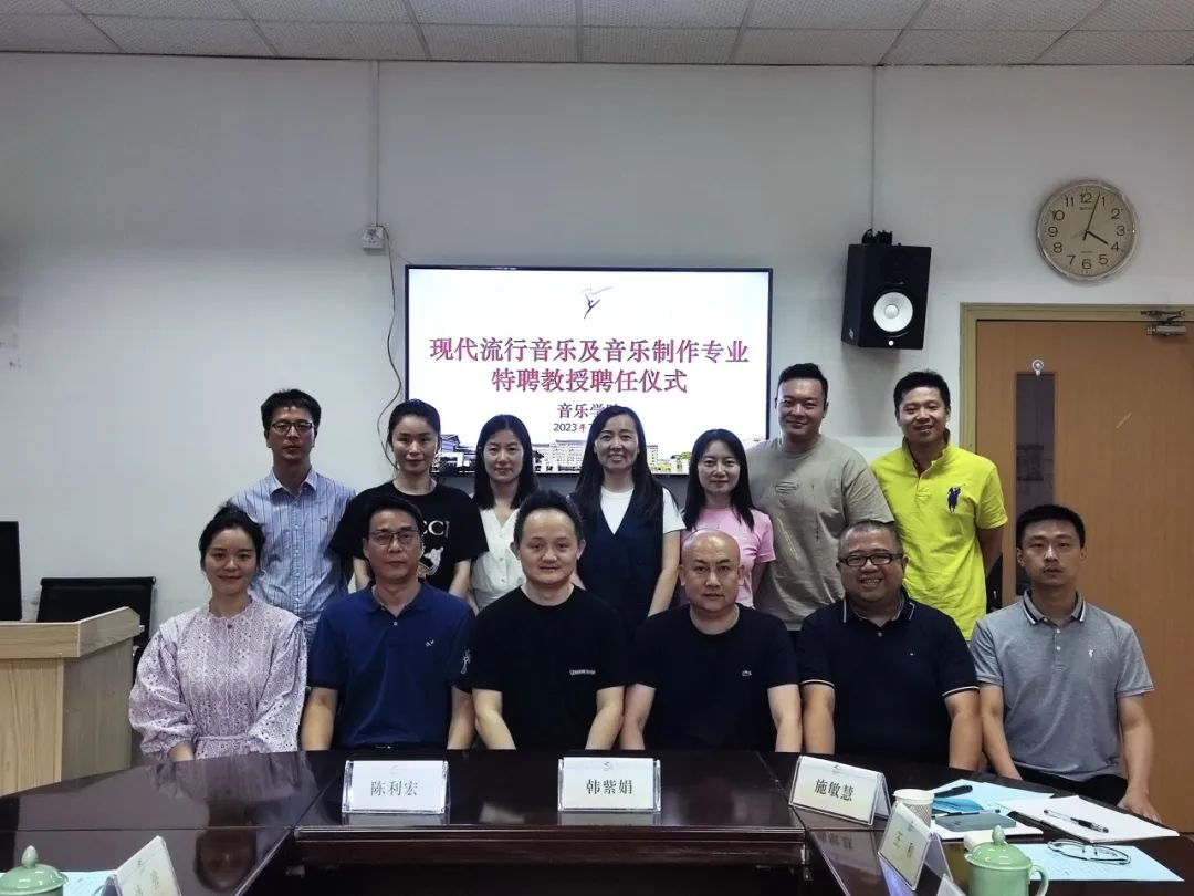 7月13日下午,音乐学院现代流行音乐及音乐制作专业特聘教授聘任仪式在3101会议室举行,聘任浙江音乐学院流行音乐系副主任王滔担任我院现代流行音乐专业特聘教授,聘任浙江音乐学院音乐工程系副教授姜超迁担任我院音乐制作专业特聘教授。音乐学院领导班子、办公室主任、流行及音乐制作相关教师代表参加聘任仪式,潘骅副院长主持仪式。