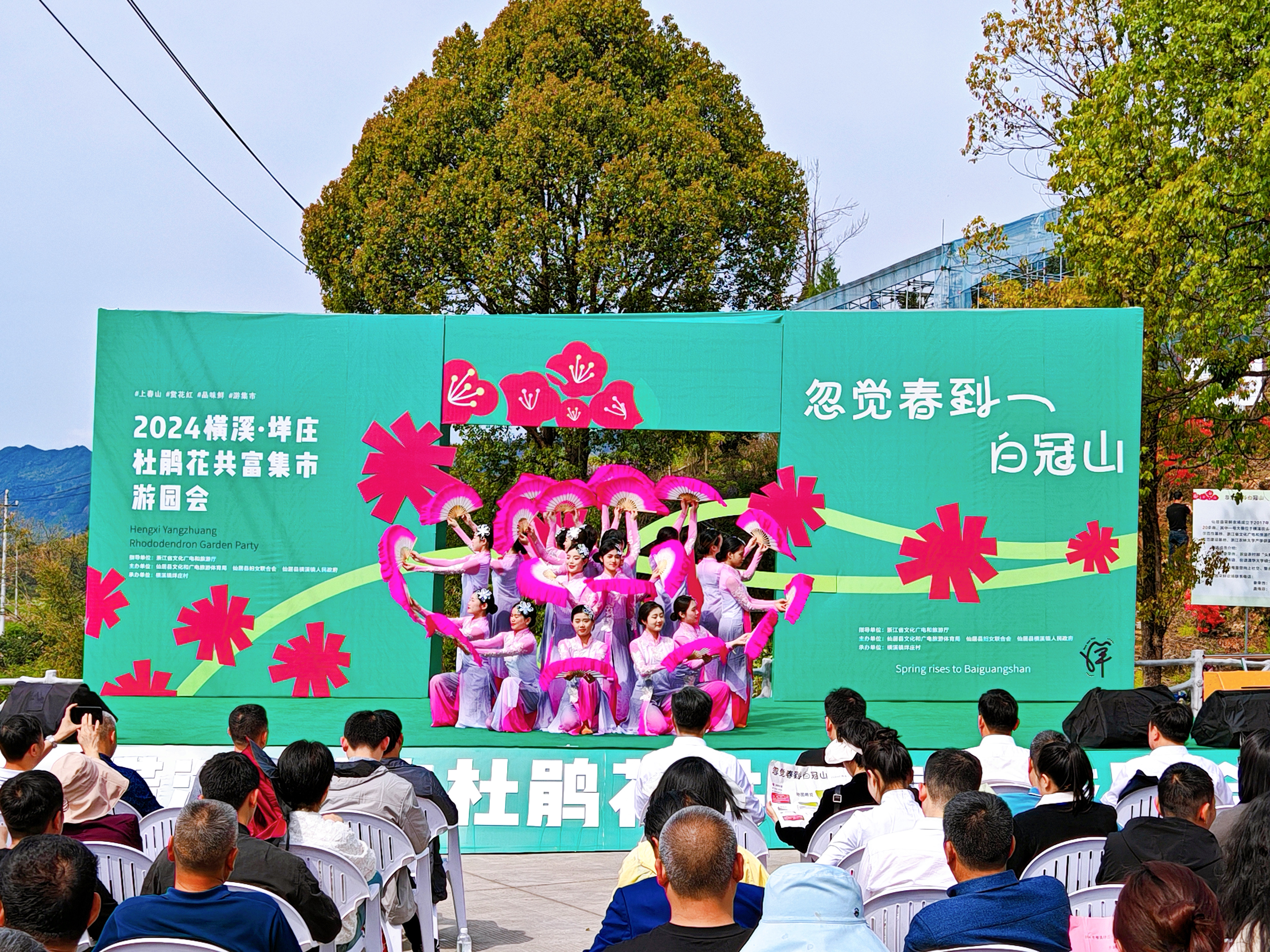 4月3日,“忽觉春到白冠山”2024横溪垟庄杜鹃花共富集市游园会开幕式在仙居横溪镇垟庄村白冠山脚举行。校党委书记薛亮,党委委员、组织部部长、人才办主任周应中出席开幕式。演艺与教育学院2022级表演艺术班25名师生应邀参加开幕式演出,同学们表演的群舞《茉莉花》《风月》《等你来》赢得了现场观众的阵阵喝彩,为开幕式增添了靓丽的青春底色。
