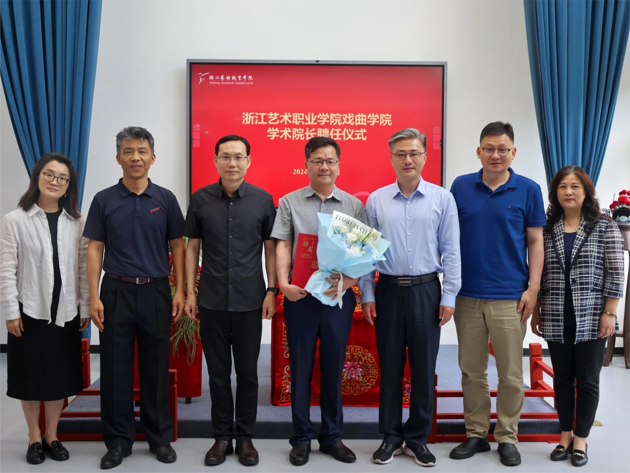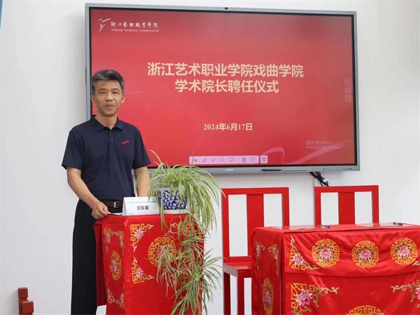 6月17日下午,浙江艺术职业学院戏曲学院学术院长聘任仪式在戏曲学院越剧教育展示馆举行。校领导薛亮、施俊天、沈军甫、刘杨、周应中,相关部门负责人及戏曲学院师生代表参加仪式。