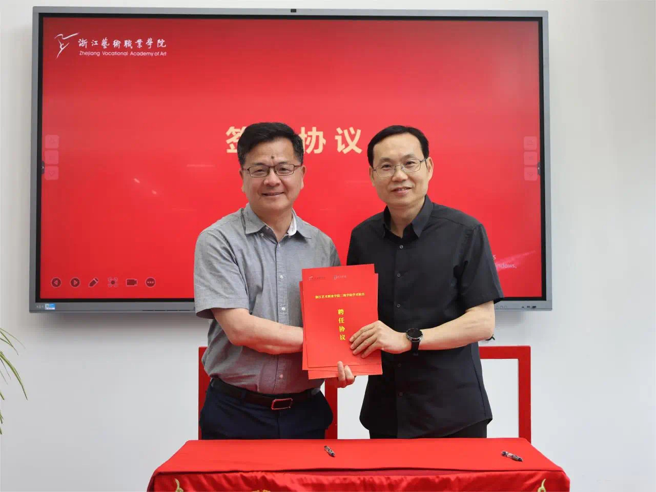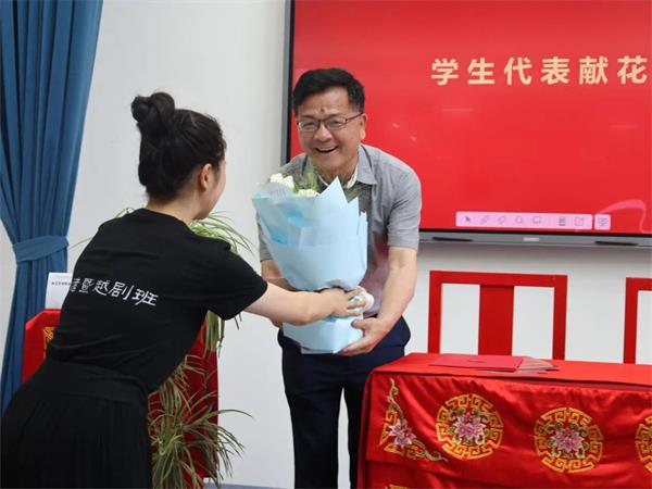 施俊天与叶志良签订聘任协议并为其颁发聘书,戏曲学生代表送上鲜花,表达了对学术院长的热烈欢迎。