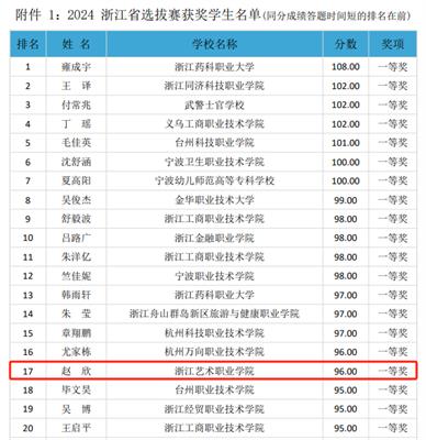 10月19日,由浙江省高等学校图书情报工作指导委员会指导,高职高专院校图书馆分委员会主办的2024年“中文在线杯”全国高职高专院校信息素养大赛浙江省选拔赛落幕。此次比赛共吸引了全省41所高职高专院校的2010名学生参加。我校22多媒体专业的赵欣同学以96分的成绩获一等奖,23文创专业的谢晞尧同学以91分的成绩荣获二等奖,这是我校学生首次获得此项赛事的一等奖,两位同学将代表浙江省征战11月举办的全国赛。