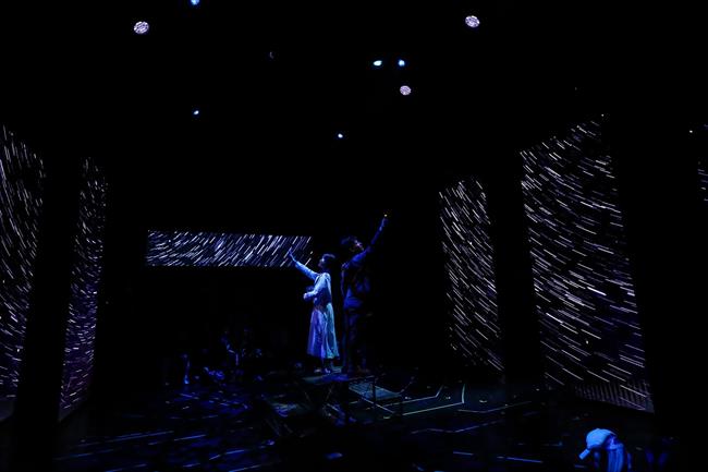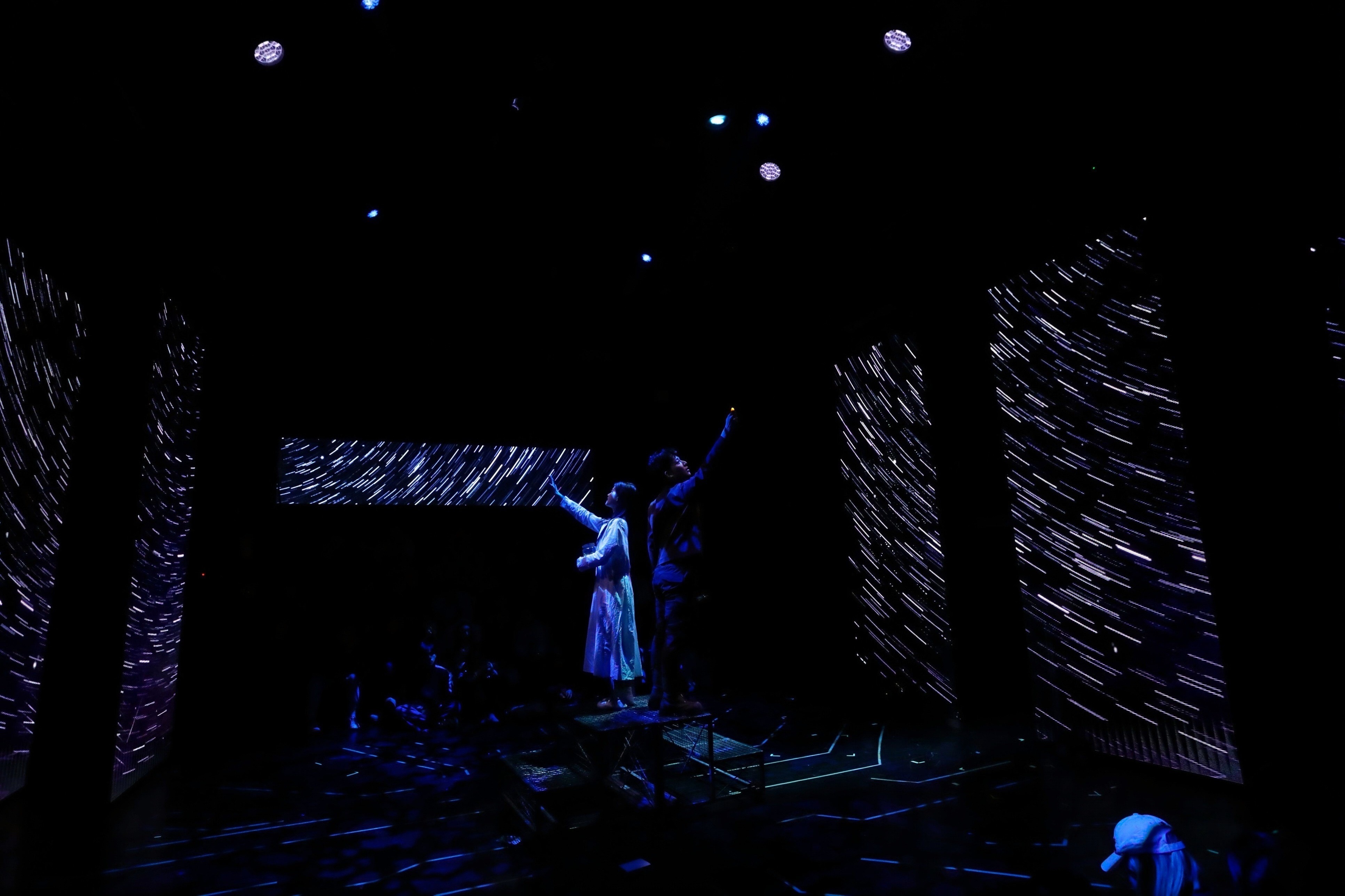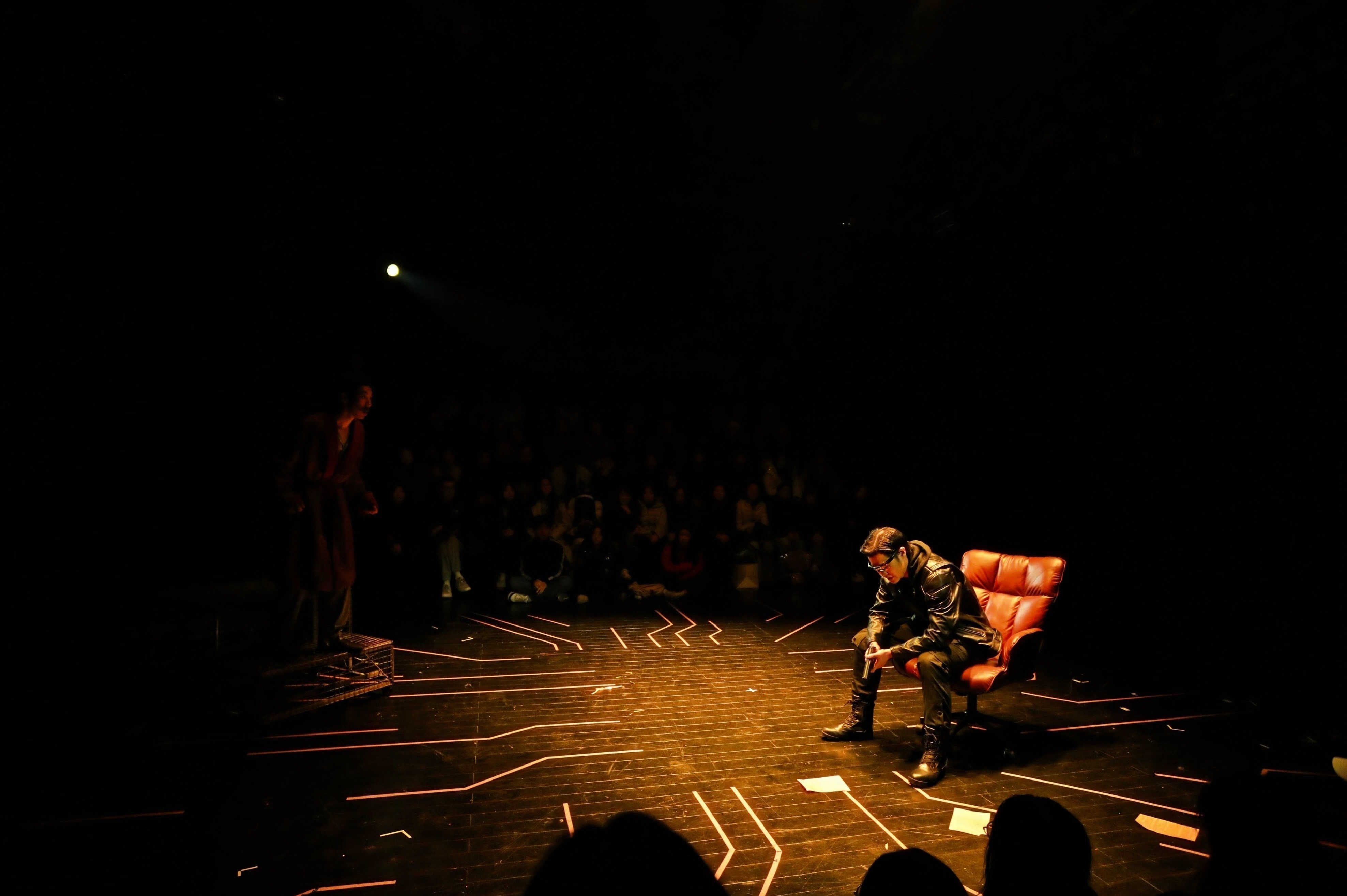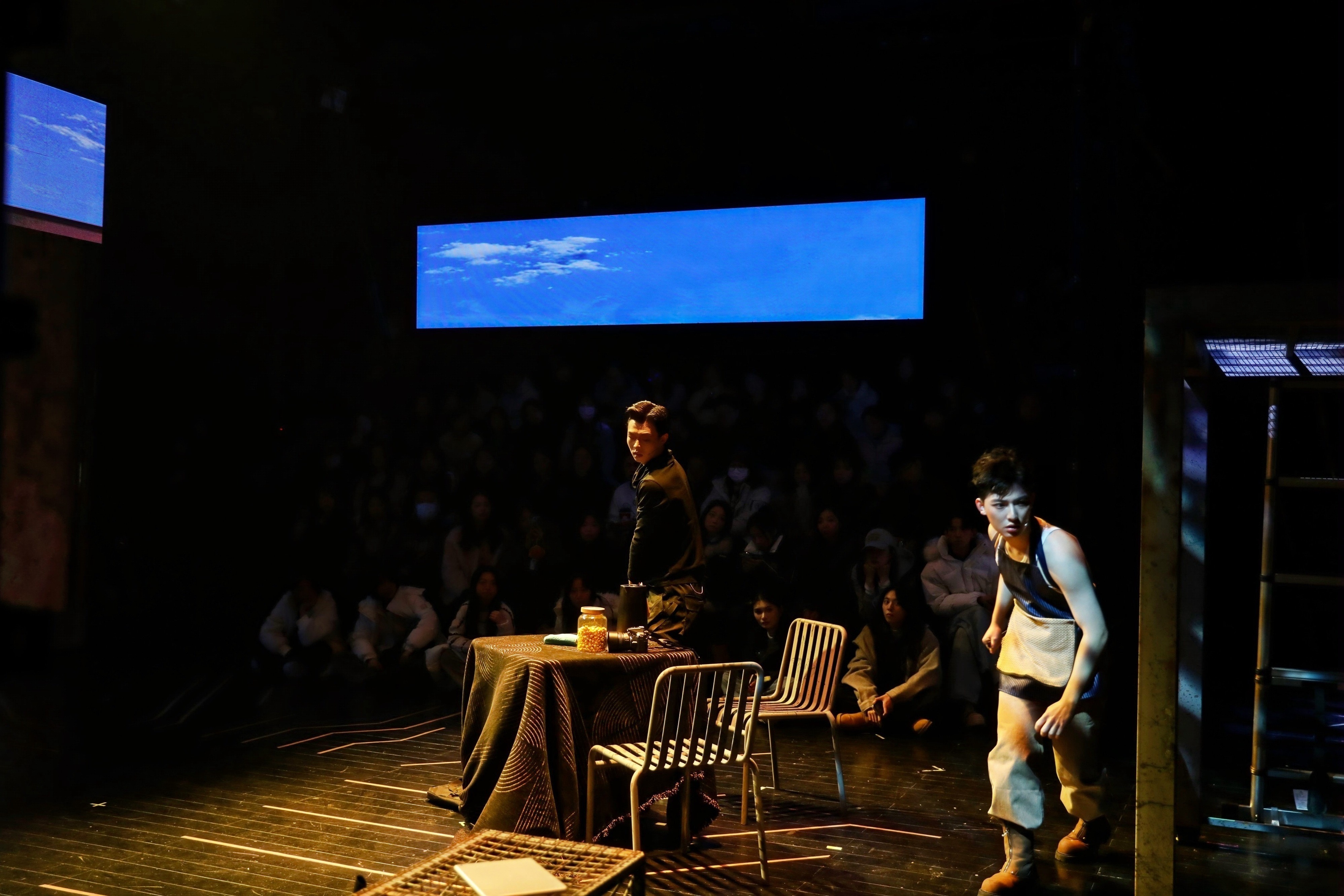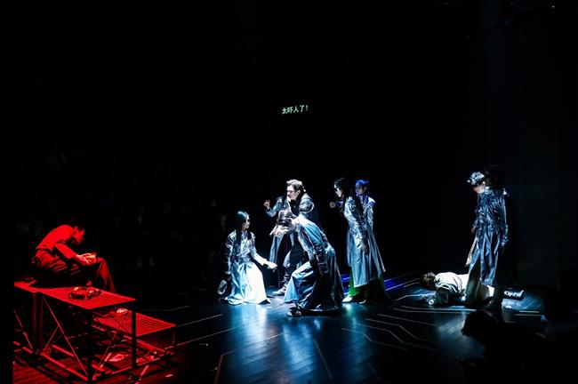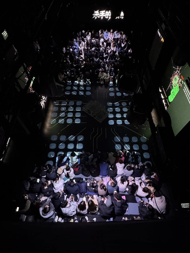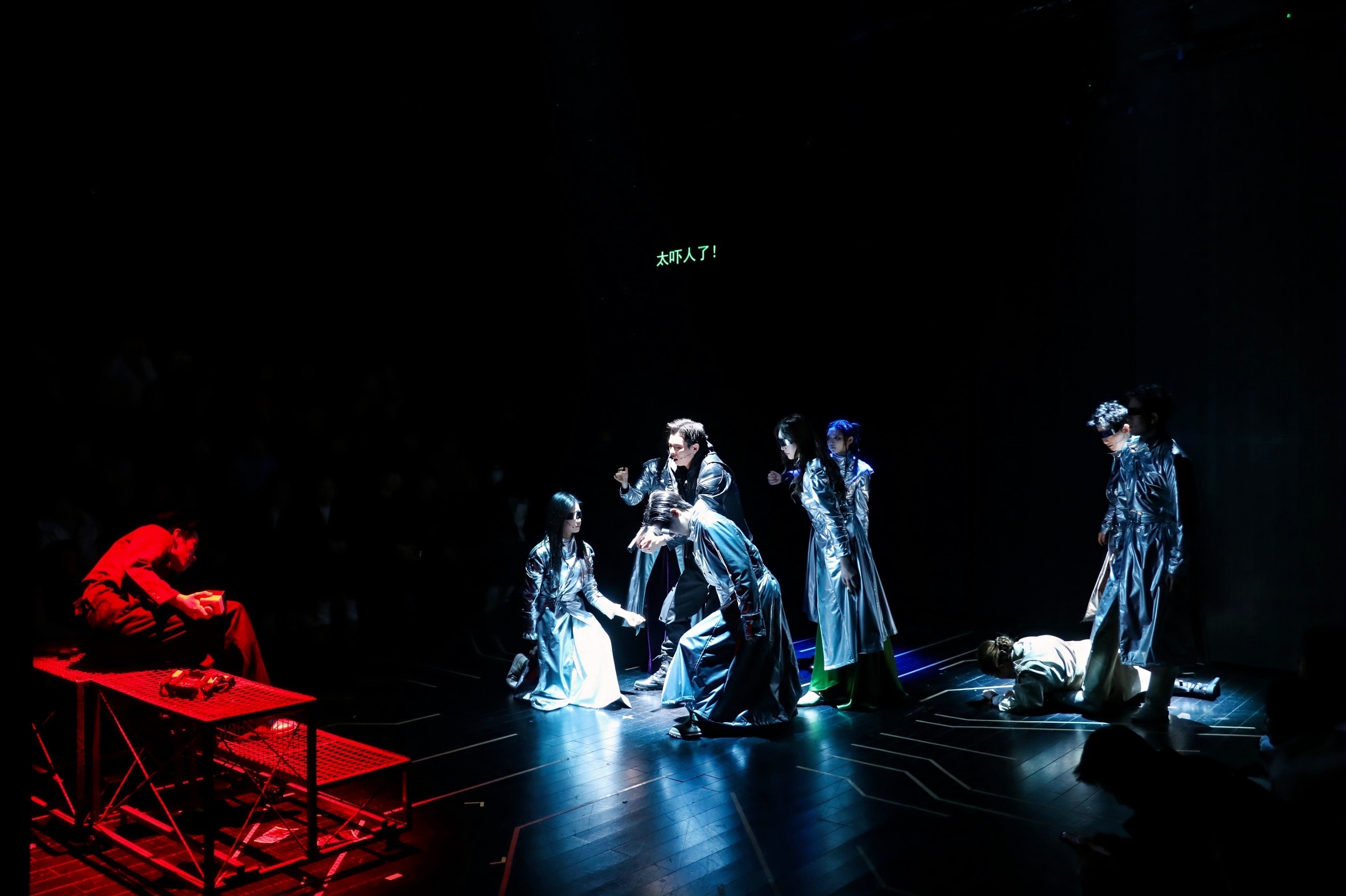 这种深度参与,在表演层面带来了独特挑战与收获。在剧中扮演关键角色的学生演员盛剑鸿对此深有体会:“这个舞台空间和其中融入的交互设计,对我们来说是全新的表演课题。我们不仅要完成角色,更要时刻感知来自两侧观众的目光,以及如何与实时影像产生‘化学反应’。比如在某个涉及抉择的关键场景,灯光、音效和后台的交互线索需要同步触发,这对我们的专注度和默契是极大的考验,但也让表演充满了即时的、真实的张力。”