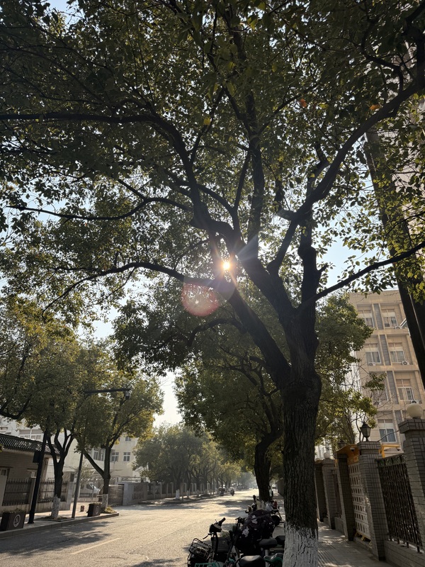 穿梭林荫道与草坪,寻找新抽的柳叶、操场边的绿树、大楼旁的绿荫。青绿藏在阳光透照的叶片里,藏在雨后草坪的清新水汽中,满屏绿意治愈所有疲惫。