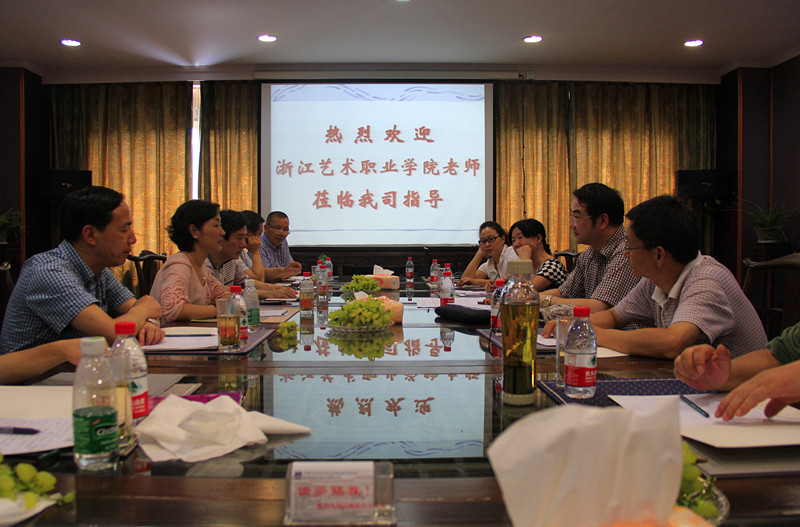 812日,浙艺院党委书记林国荣、党委副书记黄杭娟、副院长章軻、纪委书记夏开堂等班子成员与新昌县文广新局局长叶钟等进行座谈交流,表达作为艺术高等院校服务地方文化事业和文化产业的愿望。14日上午,按照计划,由浙艺院党委副书记黄杭娟、副院长沈恒、纪委书记夏开堂率领的学院各系部和相关职能部门负责人组成的考察组一行12人,在实地参观考察美盛动漫产业和达利丝绸旅游文化产业等两家新昌著名的文化企业后,在达利丝绸公司会议室,与新昌县文化广电新闻出版局局长叶钟等领导以及新昌县非遗中心、文化馆等单位负责人等进行座谈交流。座谈会上,叶钟对新昌文化产业发展、群众文化活动和非遗文化保护研究和传承等情况作了介绍,黄杭娟介绍了浙艺院办学情况和专业特色,了解当地文化事业产业发展对浙艺院在专业支撑、人才培养、学生就业、文化干部和专业人员培训等方面的需求。考察组成员就非遗文化保护传承及项目申报、非遗馆建设、农村文艺人才培训、送演出下乡、人才培养等方面情况进行交流沟通,就地当亟需指导和帮助的项目达成初步的合作意愿。