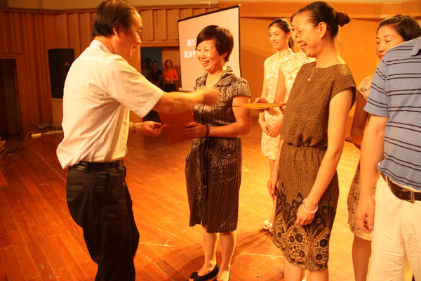 党委副书记黄杭娟宣读2012年度优秀教师、优秀干部、优秀教育工作者表彰文件,2011年度就业工作先进集体和个人表彰文件,2012—2013学年重大赛事获奖项目及教师名单和学院集体、部门单项工作获得上级有关厅局奖励的项目名单。院领导班子为获奖教职工颁发荣誉证书,他们表示,会一如既往地关心、支持、爱护全院广大教师,与大家共同铸就“中国梦”。