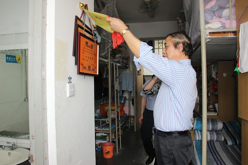 夏开堂介绍近期学院文明寝室建设情况。学院高度重视文明寝室建设工作,学院领导班子成员联系学生公寓,每学期至少一次进公寓调研已经成为一项制度。通过近两年的文明寝室建设工作,成效显著。寝室内务在整体上有很大的提升,尤其在“三面”、“三角”上具有明显改善;寝室文化氛围得到很好营造,很多寝室结合专业特色,将寝室营造出自己的特色、亮点和文化;寝室成员之间的关系更加融洽,学生讲文明懂礼貌,积极配合支持该项工作。文明寝室建设的长效机制初步形成。