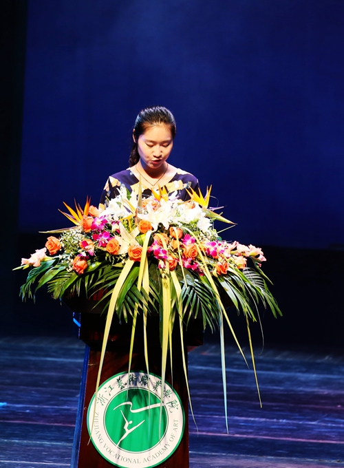 新生代表路丹凤作了发言,表达了积极向上、树立良好社会主义核心价值观、刻苦学习的决心。各系学生代表宣读“浙艺学生自觉践行社会主义核心价值观”倡议书。