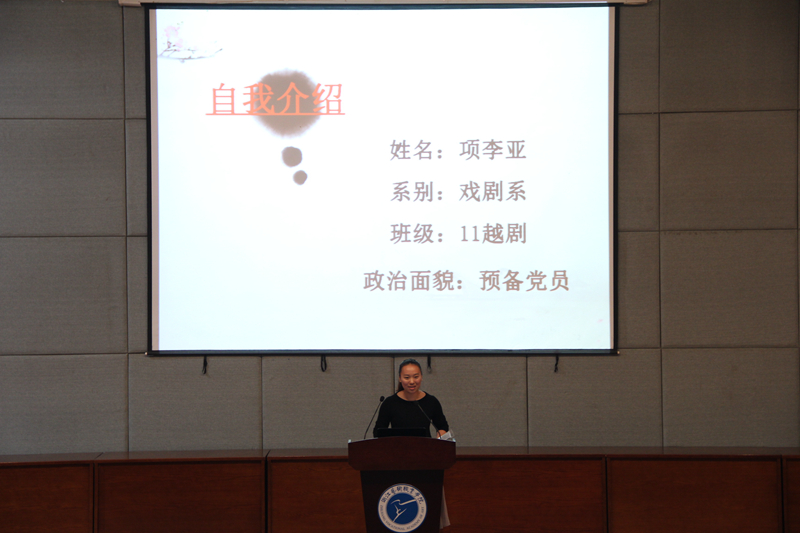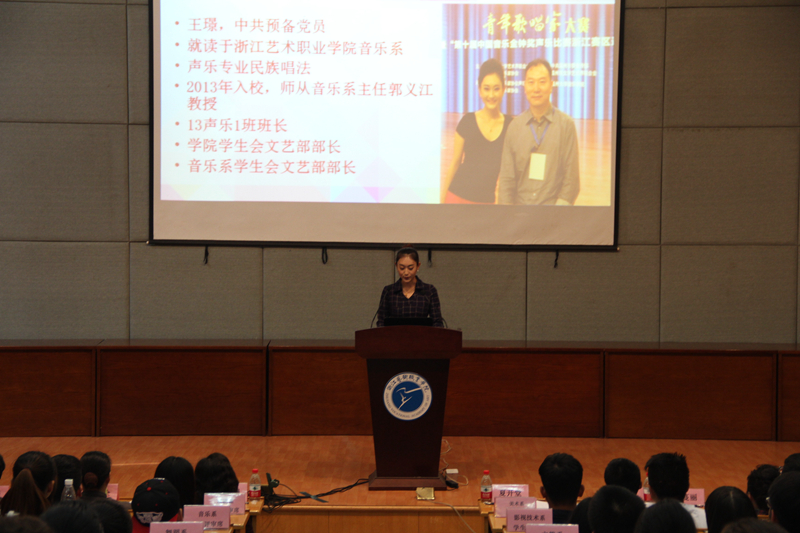评选现场,精彩纷呈,竞争激烈。前期经系部推荐、学生处审核等程序推选出的6名国家奖学金候选人,按照抽签顺序现场进行3分钟自我展示和介绍。6名候选同学逐一分别从学习成绩、社会实践、创新能力等几个方面进行了演讲、陈述,他们的精彩演讲博得在场师生的阵阵掌声。文管系王丹倩同学讲述自己丰富的社会实践工作;音乐系王璟同学展示了自己两年的部队学习经历和在浙艺两年的成长历程,并现场独唱了歌曲《江山》;戏剧系项李亚同学诉说了自己与越剧的美妙之缘和在越剧专业学习上收获的宝贵经历,还现场为大家表演了越剧选段《对月思家思何深》;美术系王鑫同学展示了自己为学校60周年校庆画册封面、活动海报、微信符号设计的一系列作品;影视技术系学生李杰同学用大量的图片描述了自己在横店的实践经历。经专家评审打分和学生评审现场投票,最终评选出音乐系王璟同学和影视技术系李杰同学代表浙江艺术职业学院申报2014-2015学年国家奖学金。