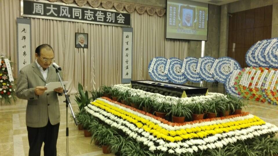 “周大风同志是我国具有影响的著名作曲家、音乐教育家。周大风先生的音乐作品通俗易懂,朗朗上口,饱含深情,具有鲜明的地方风格和时代感。”告别会现场,省文化厅党组成员、副厅长黄健全致介绍了周大风先生生平。