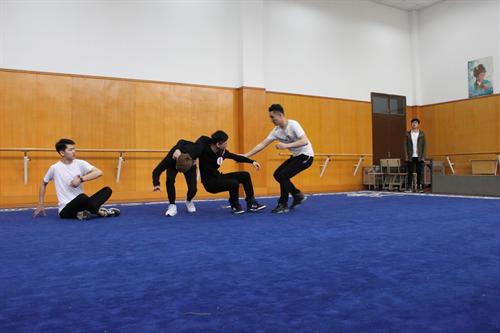 戏剧系考场中考生在两旁正襟端坐,轮到叫号时马上进入状态,激情洋溢地朗诵,身姿优美地起舞,他们要在表演、语言、形体和才艺展示中呈现出自己最好的状态。戏剧影视表演专业,有一个现场抽题环节,需要五位素不相识的考生合作表演,既考验考生的即兴原创能力,又考验他们的角色理解和团队配合。短短时间里考生们就排好了作品,很难让人察觉他们之前互不相识。想学表演的考生就是这么活跃自信。