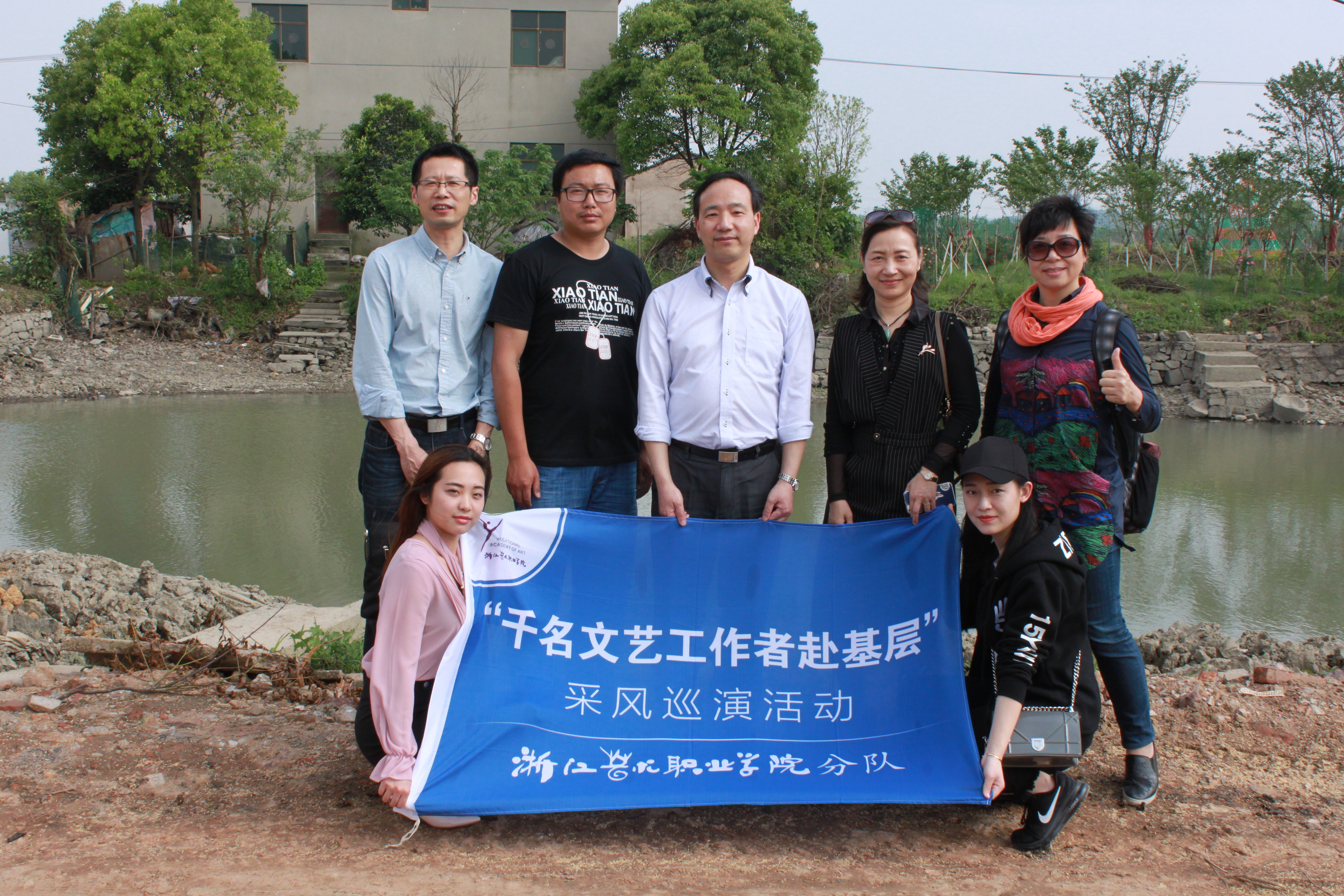 本报讯(记者 吕志辉)为深入贯彻落实省委省政府全面剿灭劣Ⅴ类水的战略部署,充分发挥浙艺师生的专业优势,积极投身治水工作,我院积极参与“千名文艺工作者赴基层”采风巡演活动,5月5日,院长黄杭娟、副院长夏开堂率浙江艺术职业学院分队赴长兴林城镇北汤村采风,为村民作专题文艺巡演。长兴县委常委、宣传部长王庆忠、副部长刘月琴和林城镇及北汤村干部等热情接待我院师生,并与黄杭娟、夏开堂和师生们在治水现场进行交流。