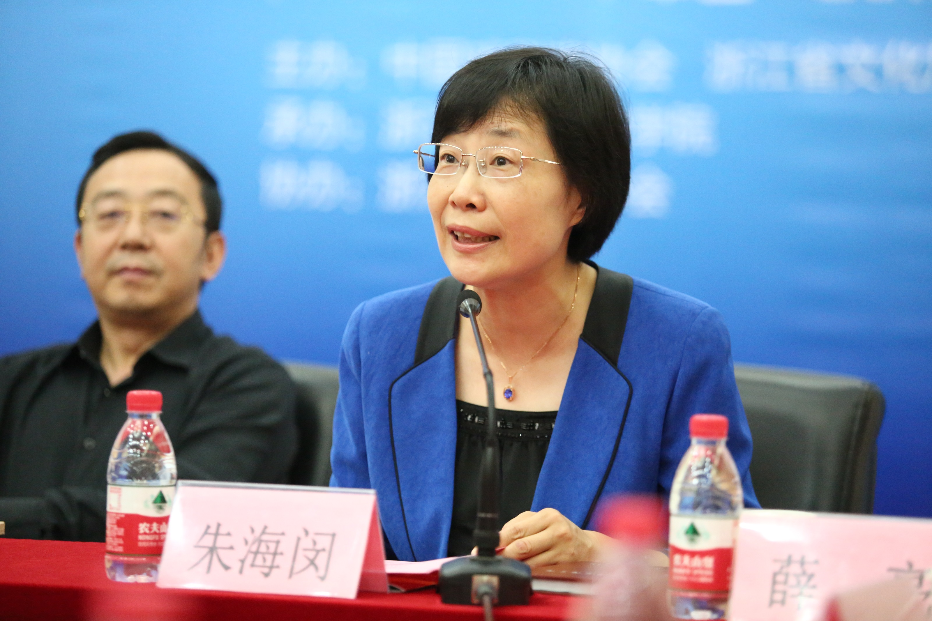 濮存昕在新闻发布会上发言。省文化厅副厅长刁玉泉致辞,浙艺院院长黄杭娟介绍本次戏剧节的筹备及演出情况。中国戏剧家协会外联部主任李华艺、浙江省文化厅艺术处处长薛亮出席。发布会由浙艺党委书记朱海闵主持。