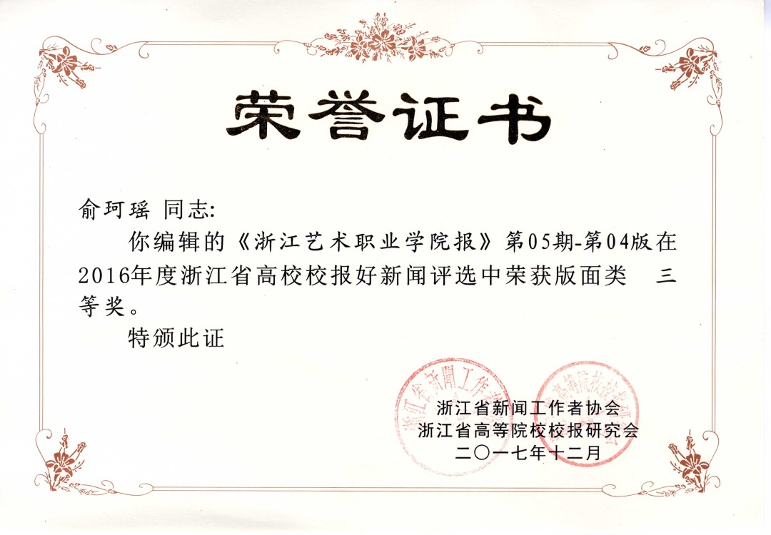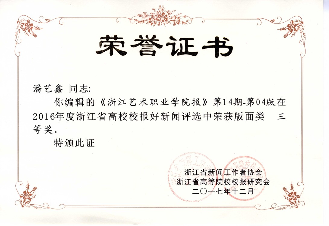 《浙江艺术职业学院报》2016年第5期第4版(编辑:俞珂瑶)