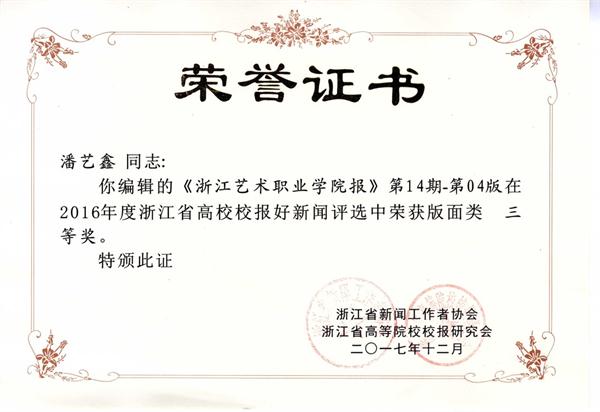 《浙江艺术职业学院报》2016年第14期第4版(编辑:潘艺鑫)