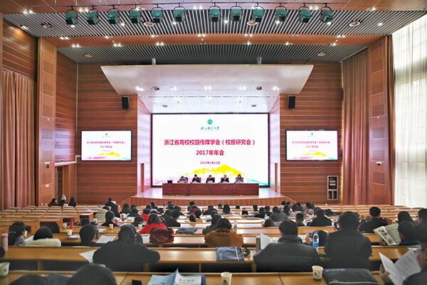 会上公布和表彰了2016年度浙江省高校校报好新闻获奖名单。会上,浙江师范大学副校长张根福致辞,对各高校获奖代表的到来表示诚挚欢迎,介绍了浙江师范大学的发展历程和近些年来新闻宣传的创新举措。常务副理事长、浙江大学党委宣传部副部长章旻致辞,总结了浙江省高校校园传媒学会最近一年来的情况,提出了新形势下校园新闻宣传面临的新挑战新机遇新希望。副理事长、浙江工业大学党委宣传部副部长贾侃作好新闻评奖情况说明并公布获奖作品。大会进行专题讲座和业务交流。浙江教育报刊总社数字媒体中心主任杨志刚、浙报集团金华分社社长徐晓恩作专题讲座。今日头条代表俞雯棋就头条号运营作现场交流。我校党委宣传部长马向东作为言论类获奖代表,第一个上台作大会交流发言;浙江理工大学、浙江大学、浙江师范大学获奖代表作为校庆宣传、通讯类和微信类获奖代表作大会交流发言。现场还以即时贴“点赞”方式给各高校校报投票,《浙江艺术职业学院报》在大会无记名自由评报中进入前十。最后,对浙江省高校校报“好新闻”作品进行颁奖。
