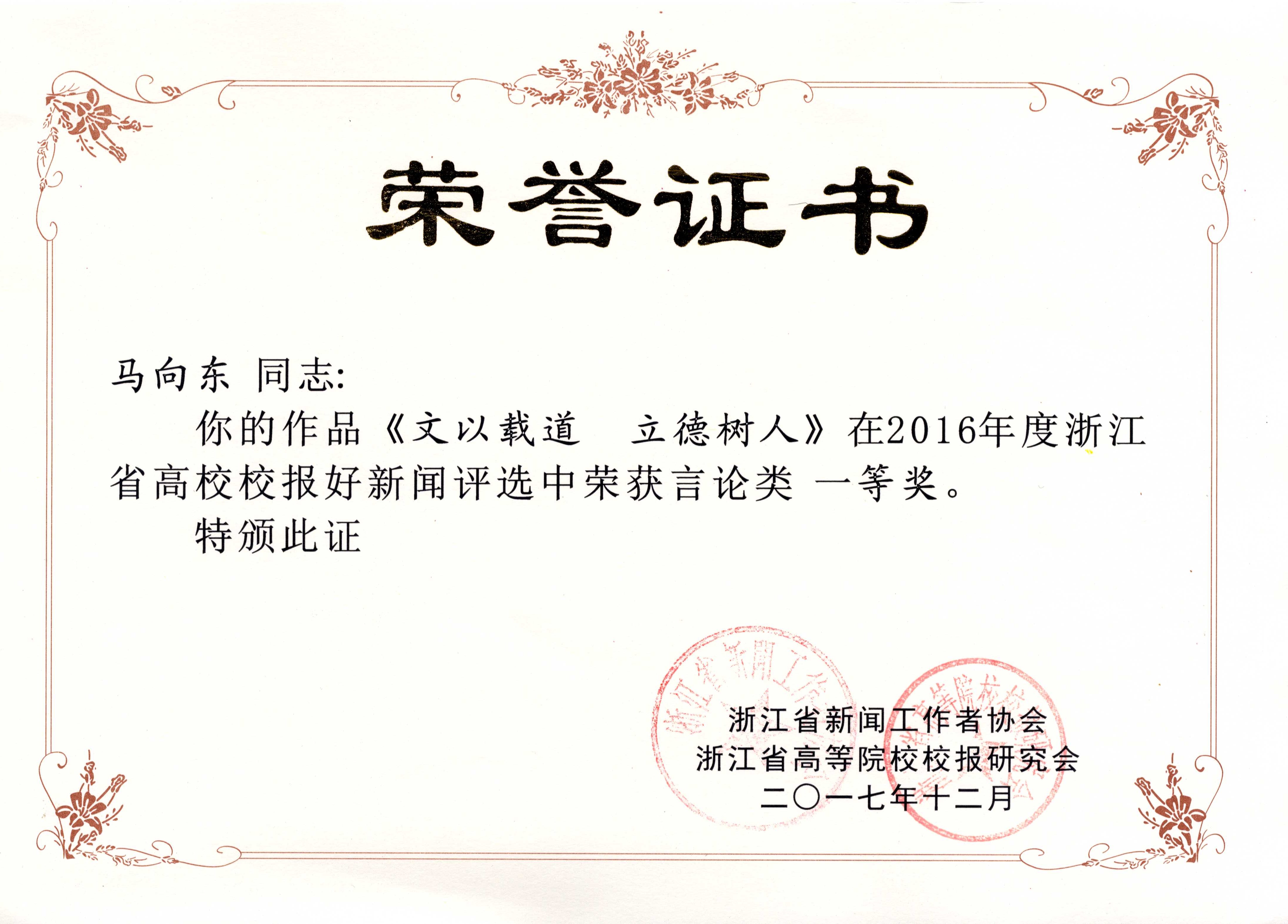 我校在2016年度浙江省高校校报好新闻评选中获得一等奖,实现新突破