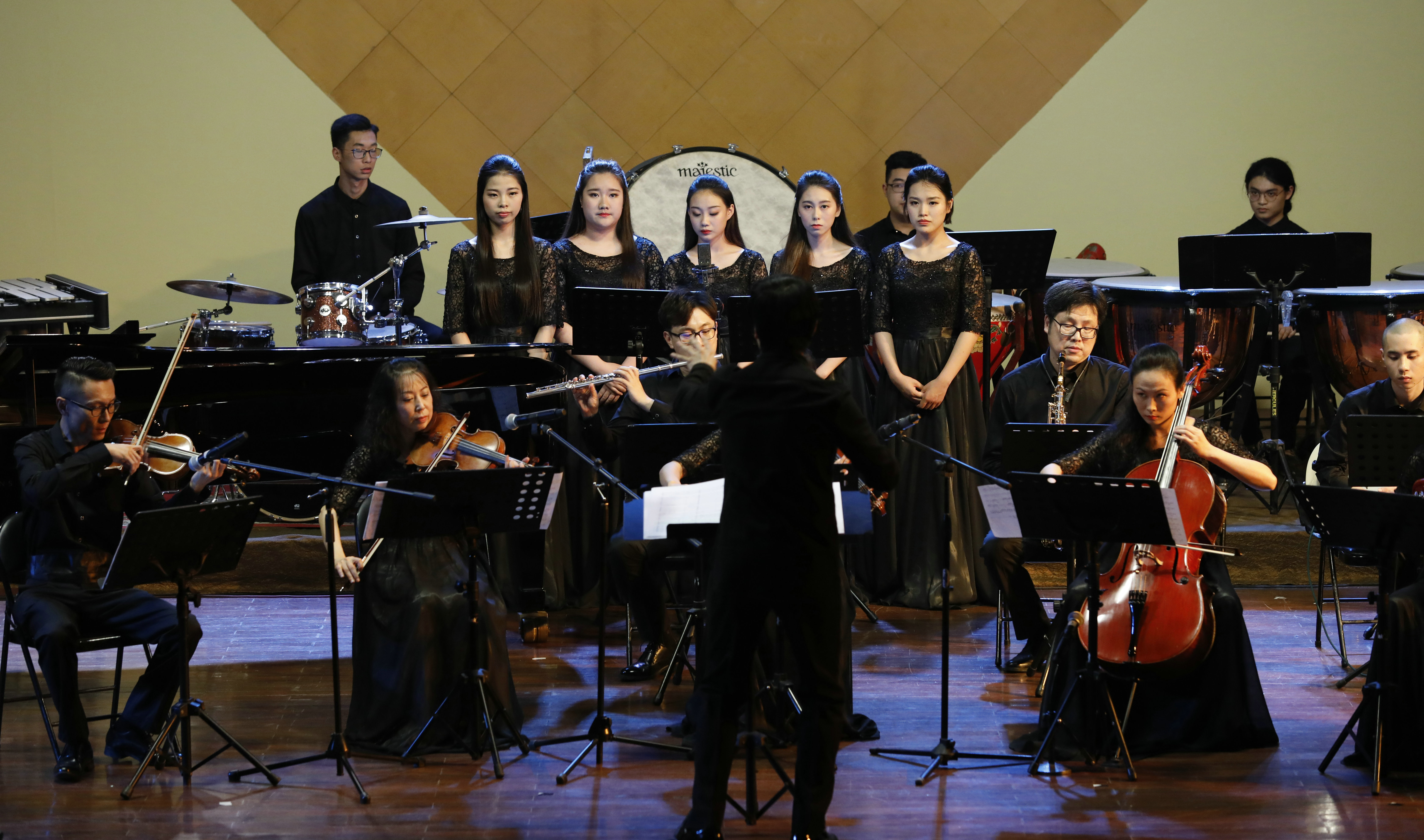 在这场以“讴歌新时代,绽放艺术梦”为主题的音乐会上,观众可以见到2016和2017年度浙江艺术职业学院面向全社会公演过的众多音乐会中的精品节目,当中有不少都出自我国音乐界泰斗朱晓谷、徐坚强、何占豪等知名作曲大师之手笔。这其中,不乏有在“‘松庭流芳’赵松庭纪念馆落成典礼音乐会”上献演过的竹笛与乐队协奏曲《竹韵》,有在浙江艺术职业学院建校60周年庆典上首演、获得过多部奖项的民族管弦乐《治水令》,还有在浙江本土音乐原创室内乐音乐会、浙江本土音乐民族管弦乐原创作品音乐会上有过精彩展示的一批节目:刚荣获浙江省第十届音乐舞蹈节声乐类金奖的阿卡贝拉无伴奏人声小组唱《新倒采茶》,融入古典、流行、民族元素的跨界之作《清波四则·平湖秋月》,充满少数民族风情韵味的女声表演唱《水母鸡》,以及大众喜闻乐见的混声合唱《雪花的快乐》等。晚会特邀著名旅美青年指挥家、浙江音乐学院作曲与指挥系教师高健和西安音乐学院硕士生导师、著名作曲家周煜国分别执棒多部具有鲜明特色的作品,相信定会给观众带去耳目一新的别样视听感受。