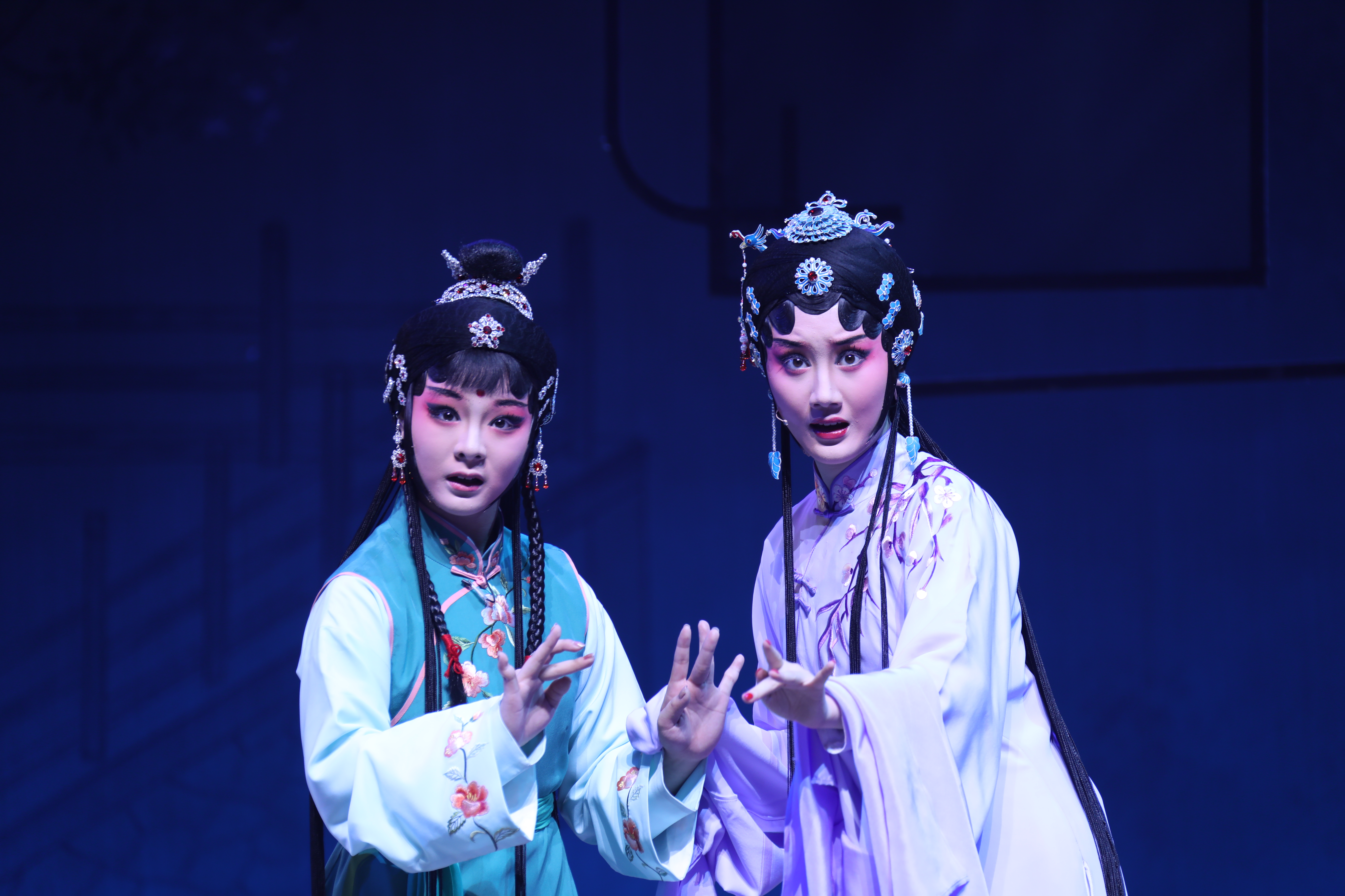 16岁的吴心怡和19岁的王恒涛,分别饰演杜丽娘和柳梦梅,他们都是张志红班上的学生,吴心怡更是张志红手把手带出来的得意弟子。有着标准昆曲演员秀美柔和长相的吴心怡来自浙江衢州,在20176月举行的“新松计划”全省青年戏曲演员大赛中,作为“代”字辈传人、专工闺门旦的她凭参赛节目《寻梦》一举荣获B组一等奖的优异成绩,成为年龄最小的获奖选手。有着浓眉大眼英武长相的王恒涛来自江苏南京,是汪世瑜的得意门生,平时在日常教学中和吴心怡是搭档,专工小生的他也曾在2017年的“新松计划”全省青年戏曲演员大赛中,凭参赛节目《亭会》获得B组二等奖。