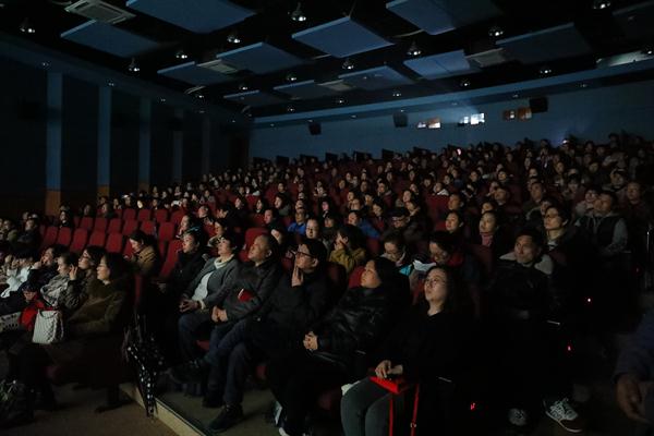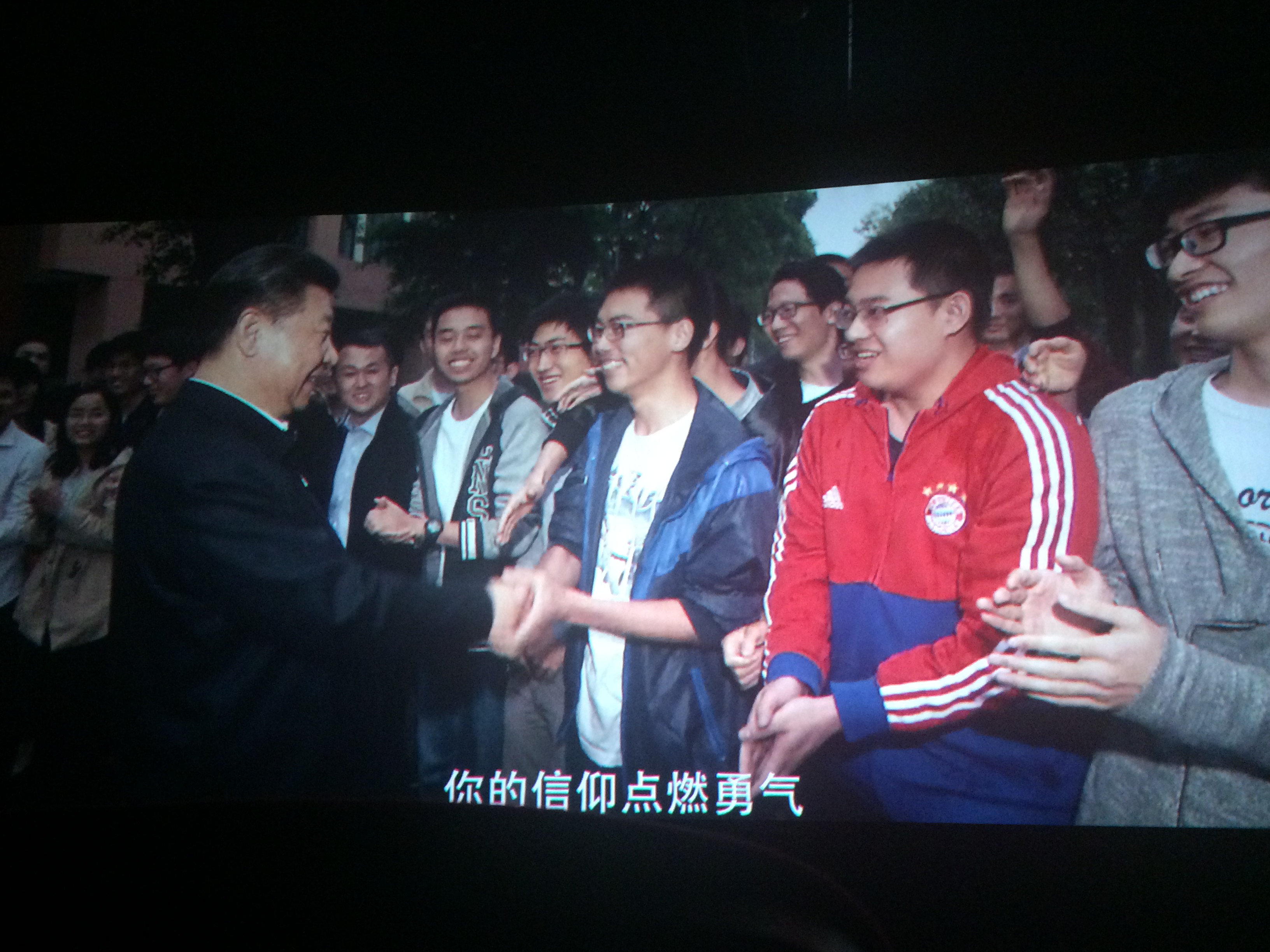 观影过程中,不乏有眼泛泪光的学生,这是激动而又自豪的泪水,我们为祖国的强盛而心潮澎湃。
