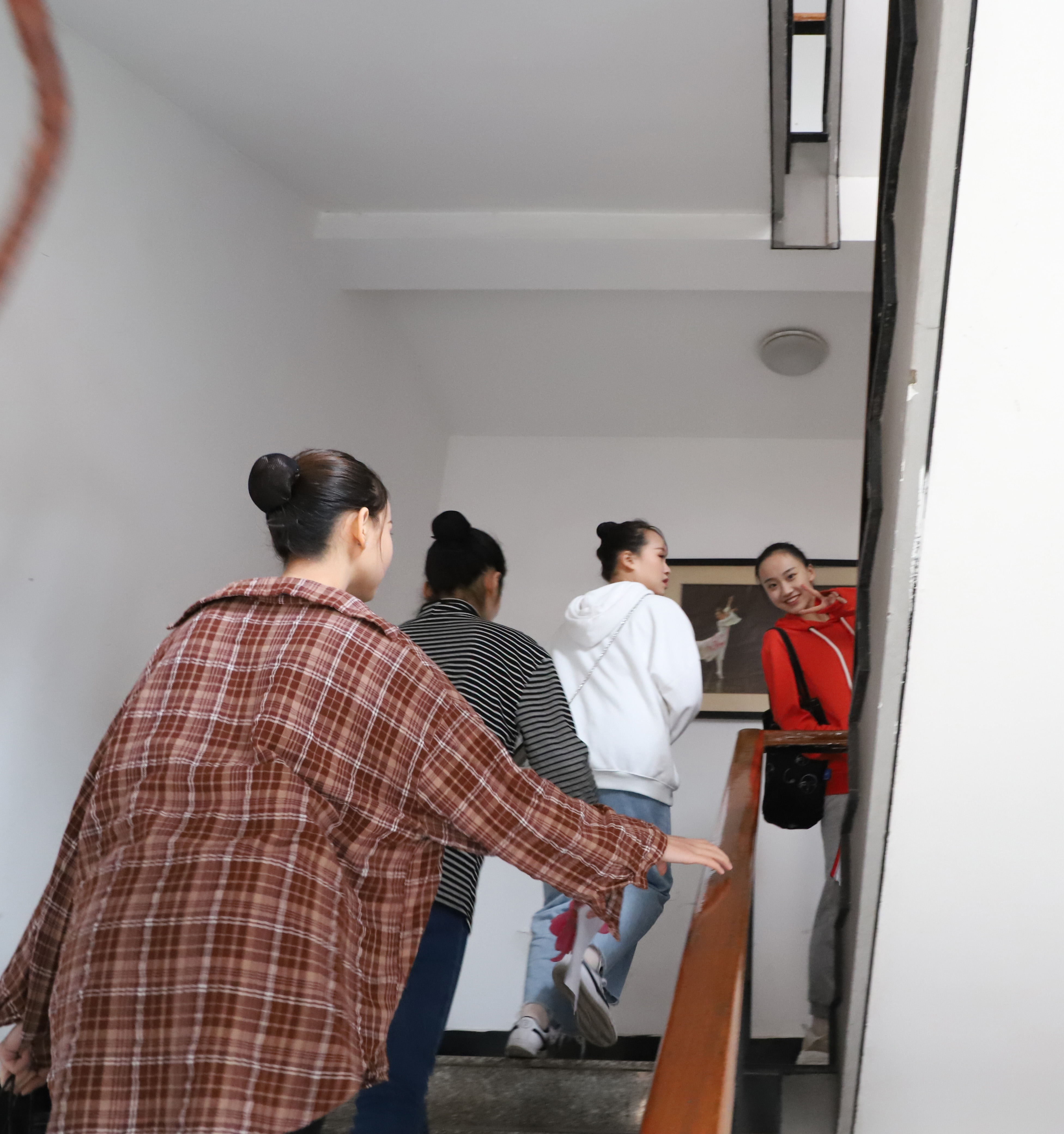 如果考场是一个人短暂的舞台,候考区更像是大型演出的幕后。就算热身,考生也不遗余力,一字马、扳腿、下腰、朗诵、开嗓等动作每一个都一丝不苟。记者现场采访了一位带队老师也是浙艺校友。她说,“虽然已经毕业多年,还是特别怀念在浙艺的日子。今天我陪着孩子们来参加考试,看着他们就想到自己当年参加艺考时候的样子。昨天晚上孩子们都练习到很晚,一大早就起床为考试做准备。我相信功夫不负有心人。”一位考完戏剧影视表演专业测的考生说,早上有点紧张,没有及时吃早餐,导致考试时状态有所降低,没有达到自己预期的效果。希望自己的经验可以给以后的考生借鉴。