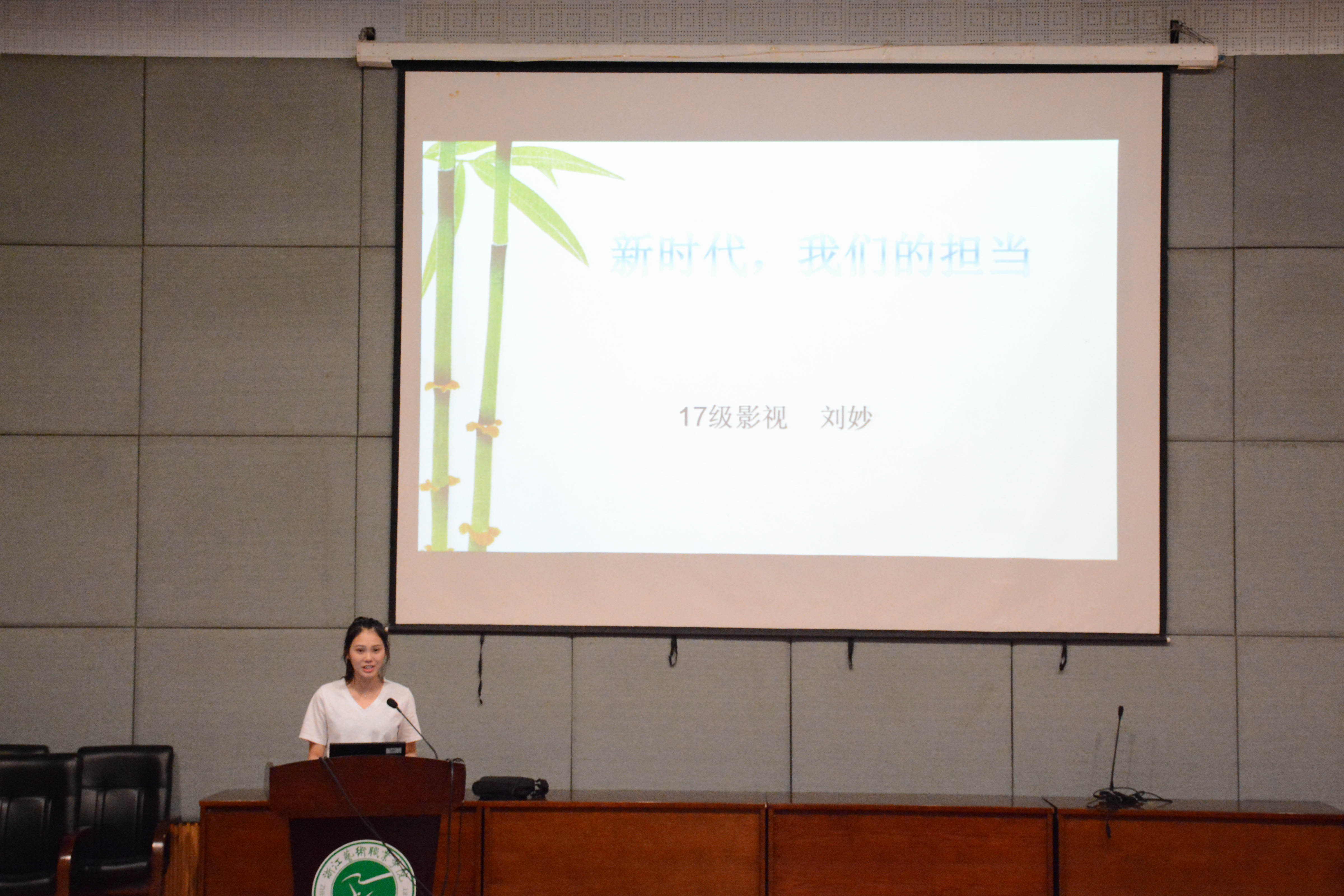 比赛现场气氛紧张热烈。每位选手的讲课都让师生们展开联想。当提到“新时代,我们的担当”时,台下的学员们会思考,担当是什么,我们能为新时代做什么。每个职业有每个职业的担当,作为大学生,作为浙艺学子,我们在心里默默想着,要担起自己的责任,发挥自己的专业特长,做志存高远的社会主义新青年,为实现中华民族伟大复兴的中国梦而努力。