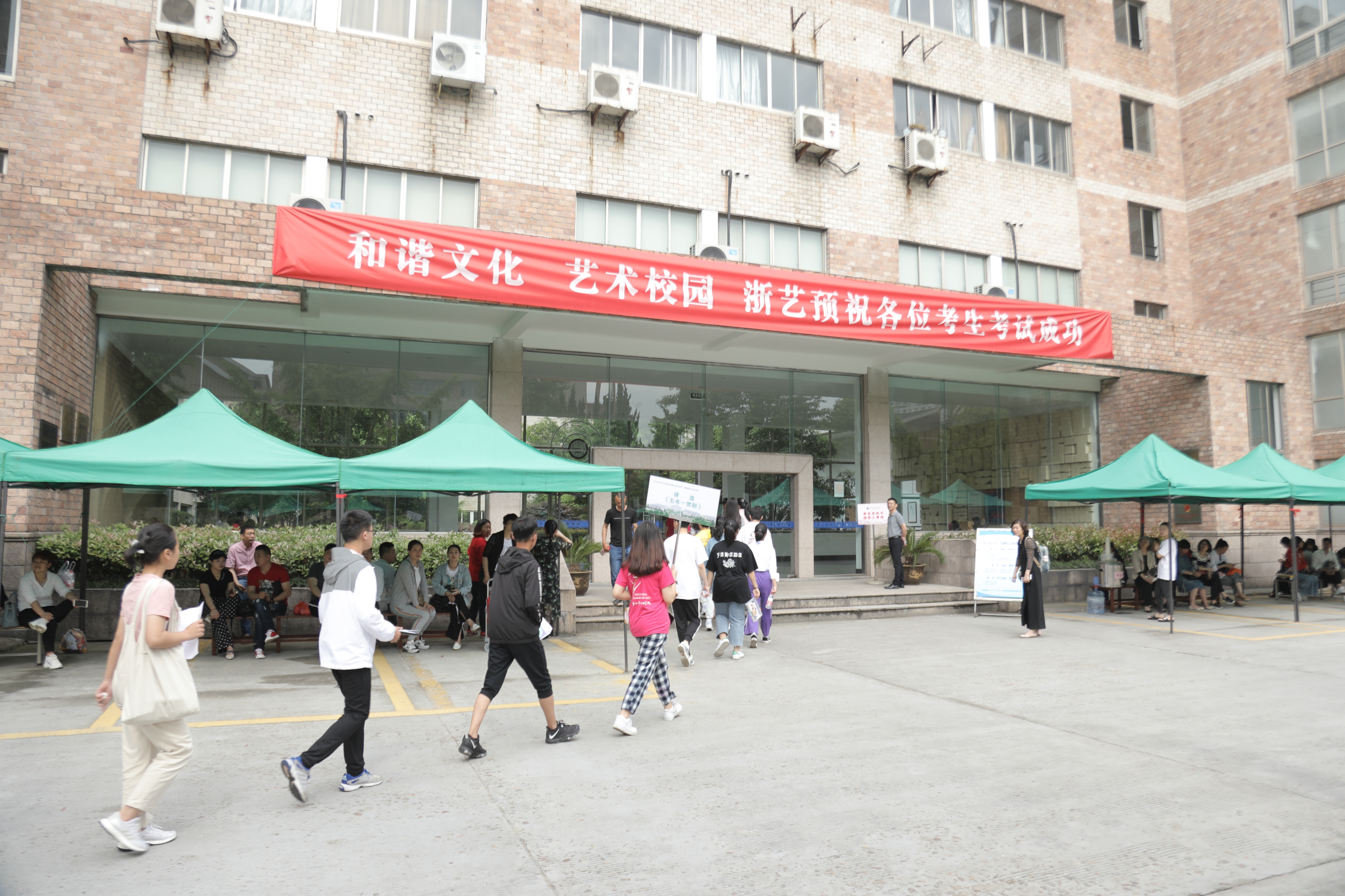 因为本次招考对象年纪较小,很多外地过来的考生几乎是全家出动。不少家长是在出发地组团来到浙艺,一位温州的家长表示,“我们也是第一次陪考,对于艺术考试不太熟悉,所以在考前就联系了一批同样陪考的家长一起来,互相有个照应。”也有家长在考场门口焦虑得停不下脚步,“心情真的很紧张,不知道自己能帮上什么忙”,家长们对开启孩子艺术生涯的新起点充满期待。