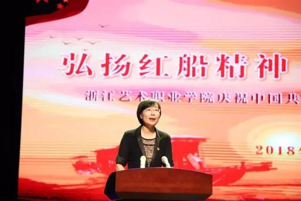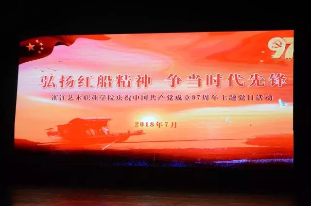 7月4日下午,“弘扬红船精神 争当时代先锋”浙江艺术职业学院庆祝中国共产党成立97周年主题党日活动在浙江实验艺术剧场举行。校党委班子成员、处科级干部、全体党员、教职工和学生代表参加活动。省文化厅党组副书记、副厅长、厅直属机关党委书记陈瑶,厅直属机关党委专职副书记吴莘超,厅直属机关党委委员、浙江图书馆党委书记徐洁等莅临指导。