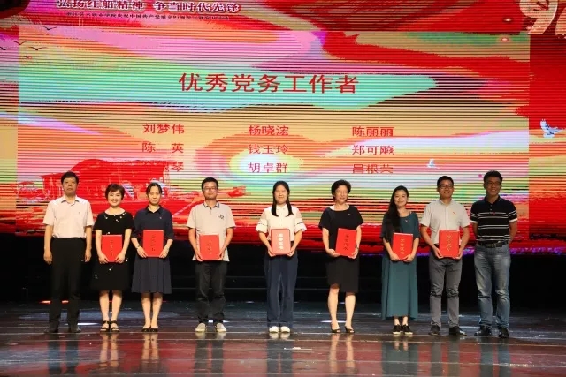 在庄严的国歌中,主题党日活动拉开序幕,大会由校党委副书记夏开堂主持。院长、党委副书记黄杭娟宣读校党委表彰决定。朱建炜等29人获“浙江艺术职业学院优秀共产党员”称号,刘梦伟等9人获“浙江艺术职业学院优秀党务工作者”称号,舞蹈系党总支等5个基层党组织获“浙江艺术职业学院先进基层党组织”称号,彭云波等3人获“第三届最受师生喜爱的书记”称号。吴莘超和校党委班子成员分别为各项荣誉获得者颁奖。