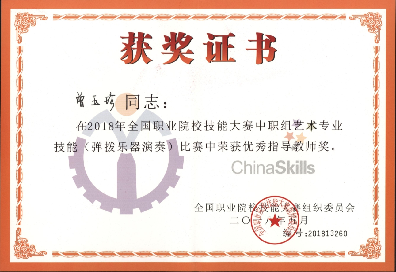 我国辞书之祖、儒家经典之一《尔雅》中写到:“春为苍天,夏为昊天。”春是一天中的清晨,也是人生中的青春。有一位风华正茂的小伙,在浙艺音乐厅舞台上,以一曲满怀春天感悟、生命礼赞的筝曲《苍歌引》,夺得2018年全国职业院校技能大赛艺术专业技能(弹拨乐器演奏)赛项中职组一等奖,他就是浙艺附中俞嘉睿同学。他的指导教师,是浙江省音协古筝教育专业委员会副会长、浙江艺术职业学院音乐系副教授曾玉珍。