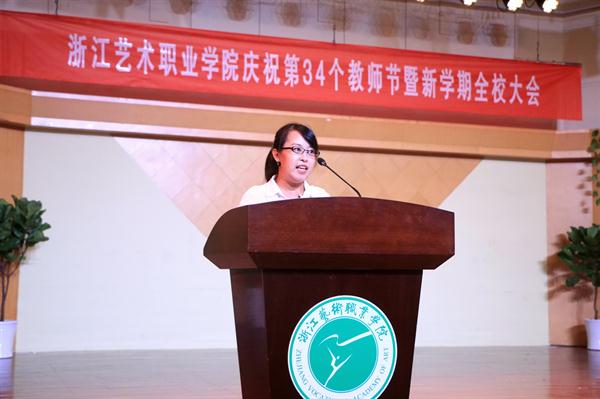 9月19日下午,浙江艺术职业学院庆祝第34个教师节大会暨新学期全校大会在音乐厅举行。校领导朱海闵、黄杭娟、夏开堂、章轲、沈恒、徐芳、沈军甫、王涛、马向东出席,全院教职工参加大会。党委副书记夏开堂主持大会,他代表校党委领导班子向过去一年来在各个岗位上辛勤工作、默默付出,为学校发展和学生成长成才做出不懈努力的全体教职工送上亲切的问候和诚挚的感谢。