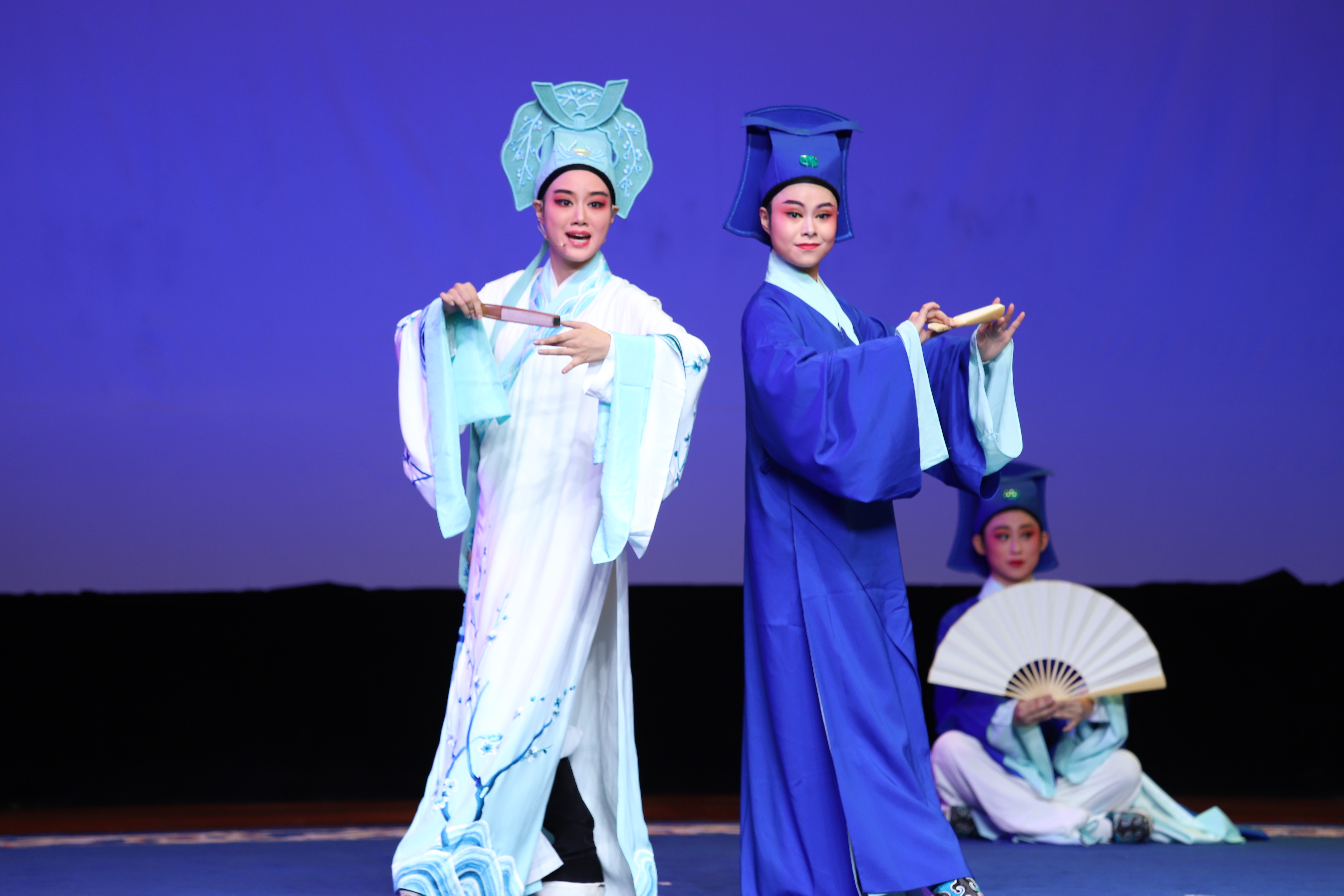 浙艺戏曲表演专业在校生代表印晶莹,8月刚从全国“梨花杯”青少年戏曲教育教学成果展示活动中载誉归来。她代表戏剧系学长学姐欢迎了21位新同学,并告诉同学们学习戏曲一定要有不怕苦的思想准备,功到自然成。浙江艺术职业学院和浙江音乐学院戏曲表演专业学生,在现场分别演出了越剧《情探·行路》和《梁祝·思祝下山》。