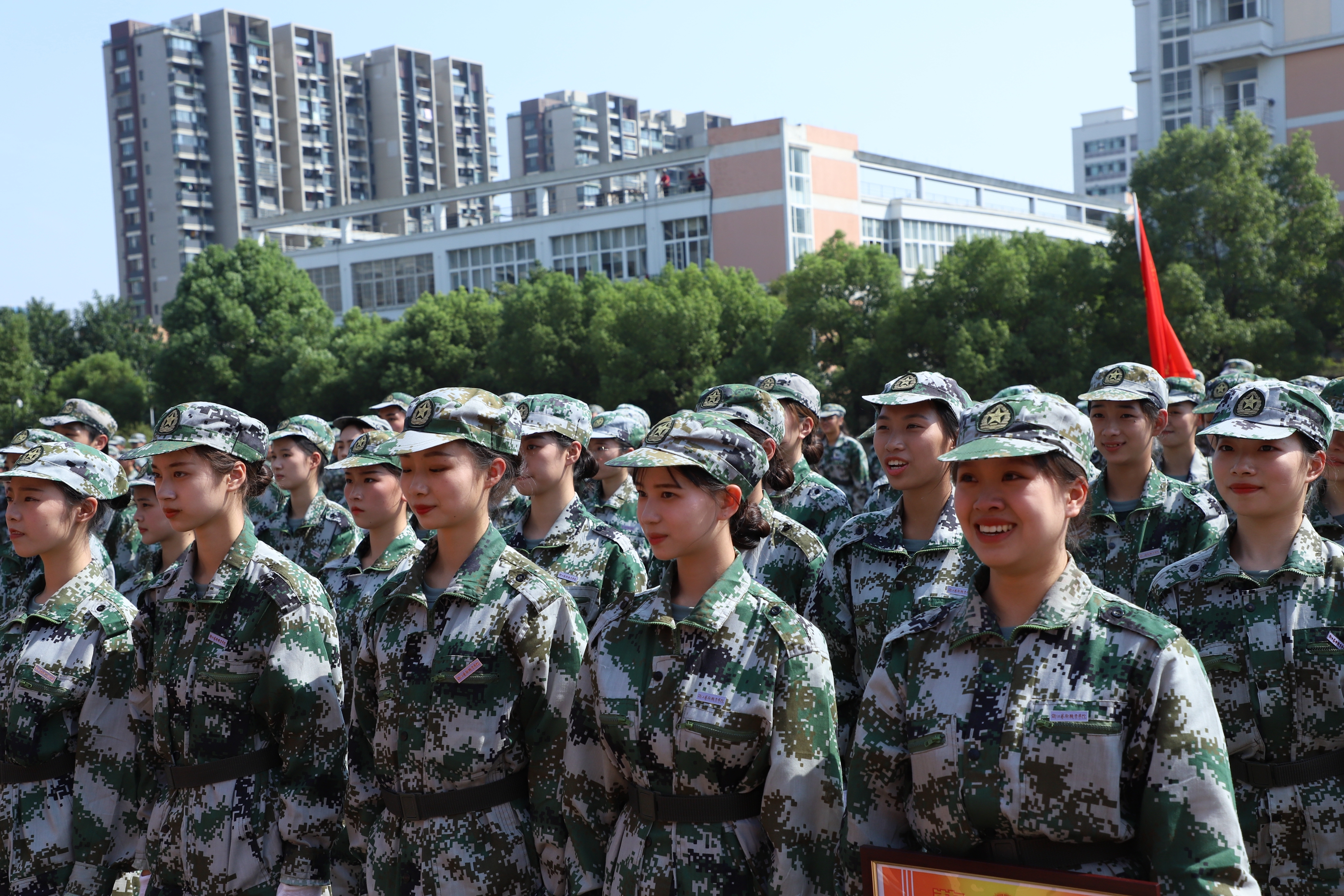 陈贝贝在接受采访时表示,教官做了很多努力,保证军训顺畅进行,同学们也从开始的纪律性较差,队列素质较弱,到最后完成了自我的飞跃。在队列会操中各个方阵也表现得非常优异,这十几天,每个同学都在坚持,都在努力。他讲到军训期间有几天下雨,有几个班的同学在彩排中比其他班的同学稍微落后一些,他们就主动要求还要在雨中进行训练,教官们也很感动。这份感动同样也深深植根到他心里。