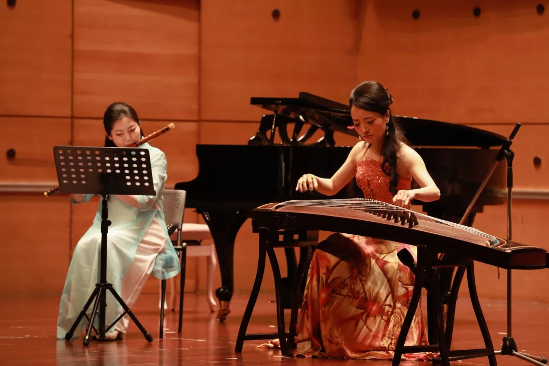 晚会上,夏金瓯共演奏了8部风格迥异、形式多样的筝乐作品。这当中既有耳熟能详的经典之作,也有近年来新创作的筝曲,表演形式涵盖独奏、协奏、重奏、合奏,当中不乏有涉及现代音乐创作技法的实验性当代筝曲以及与西洋古典乐相融合的跨界之作,带领观众徜徉于一场充满新声音的听觉之旅。