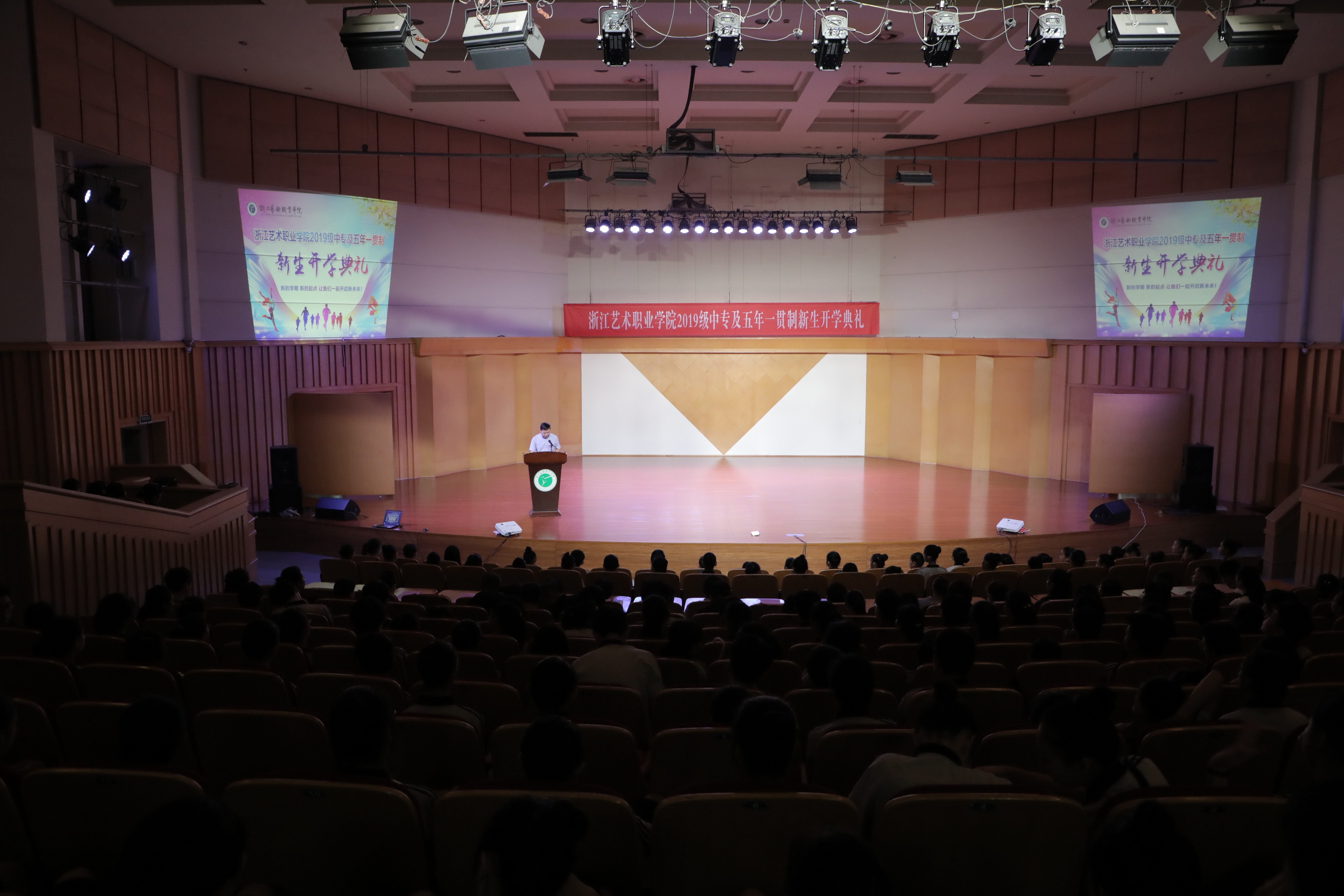 9月3日上午,浙艺2019级中专段新生在浙艺音乐厅举行开学典礼。校党委副书记夏开堂,教务处、学工部、戏剧系、音乐系、舞蹈系、基础教学部相关负责人、校中专学生管理协调小组成员、文化教师、辅导员、班主任及262名新生参加。