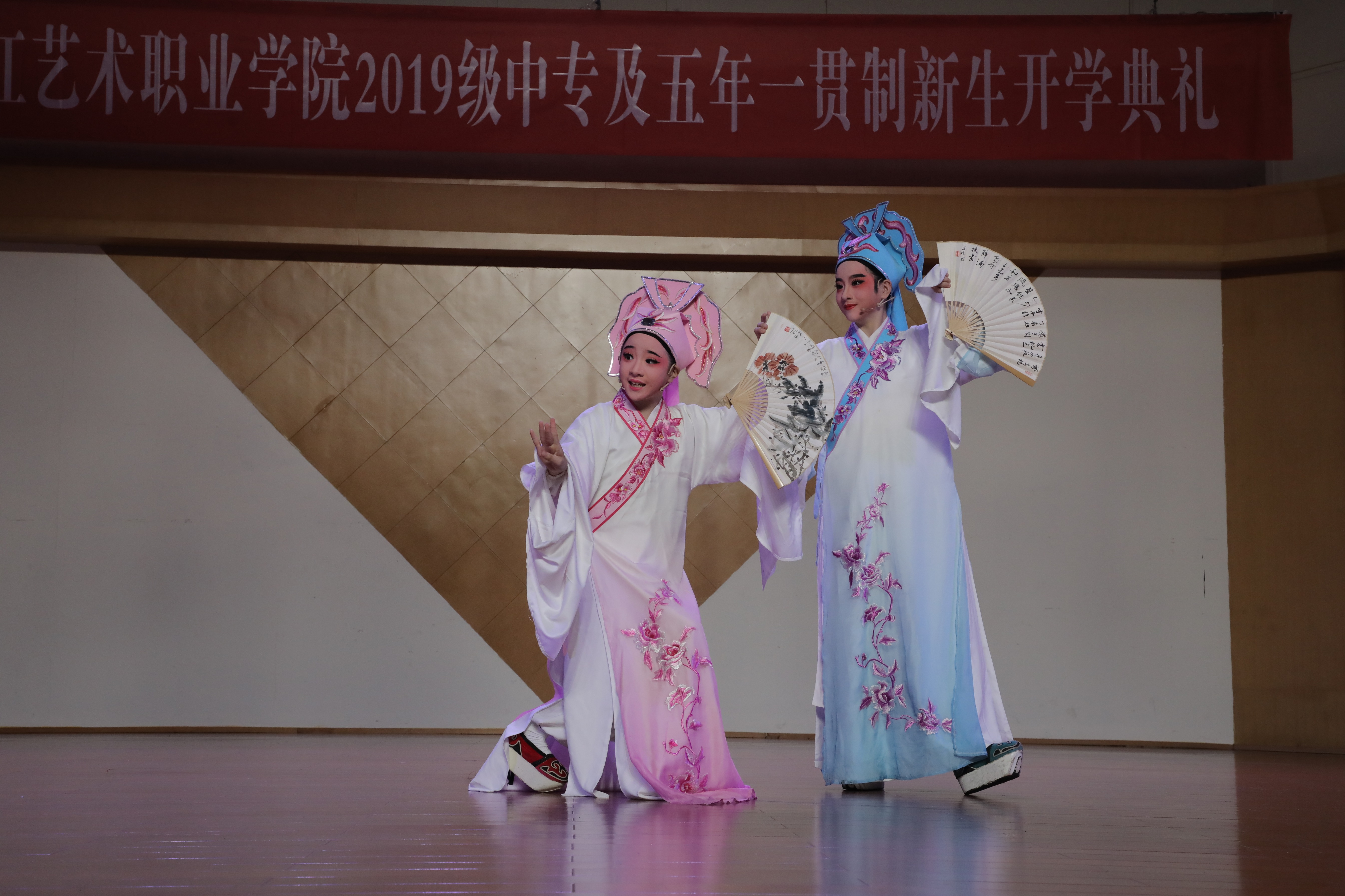 现场,小百花班陈子心、陈可心表演越剧《十八相送》,生动的表演十分可爱。