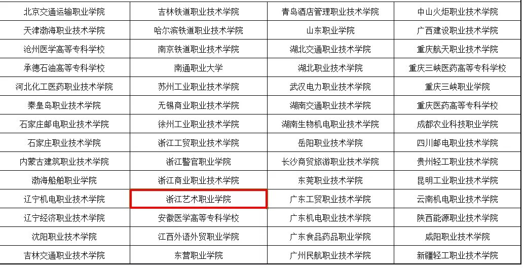 10月25日,教育部网站发布教育部、财政部《关于中国特色高水平高职学校和专业建设计划拟建单位的公示》,来自全国的197所高职院校榜上有名,其中,高水平学校建设单位共计56个,高水平专业群建设单位141个。浙江艺术职业学院位列高水平专业群建设单位名单,为全国唯一一所入选的综合性高职艺术院校。