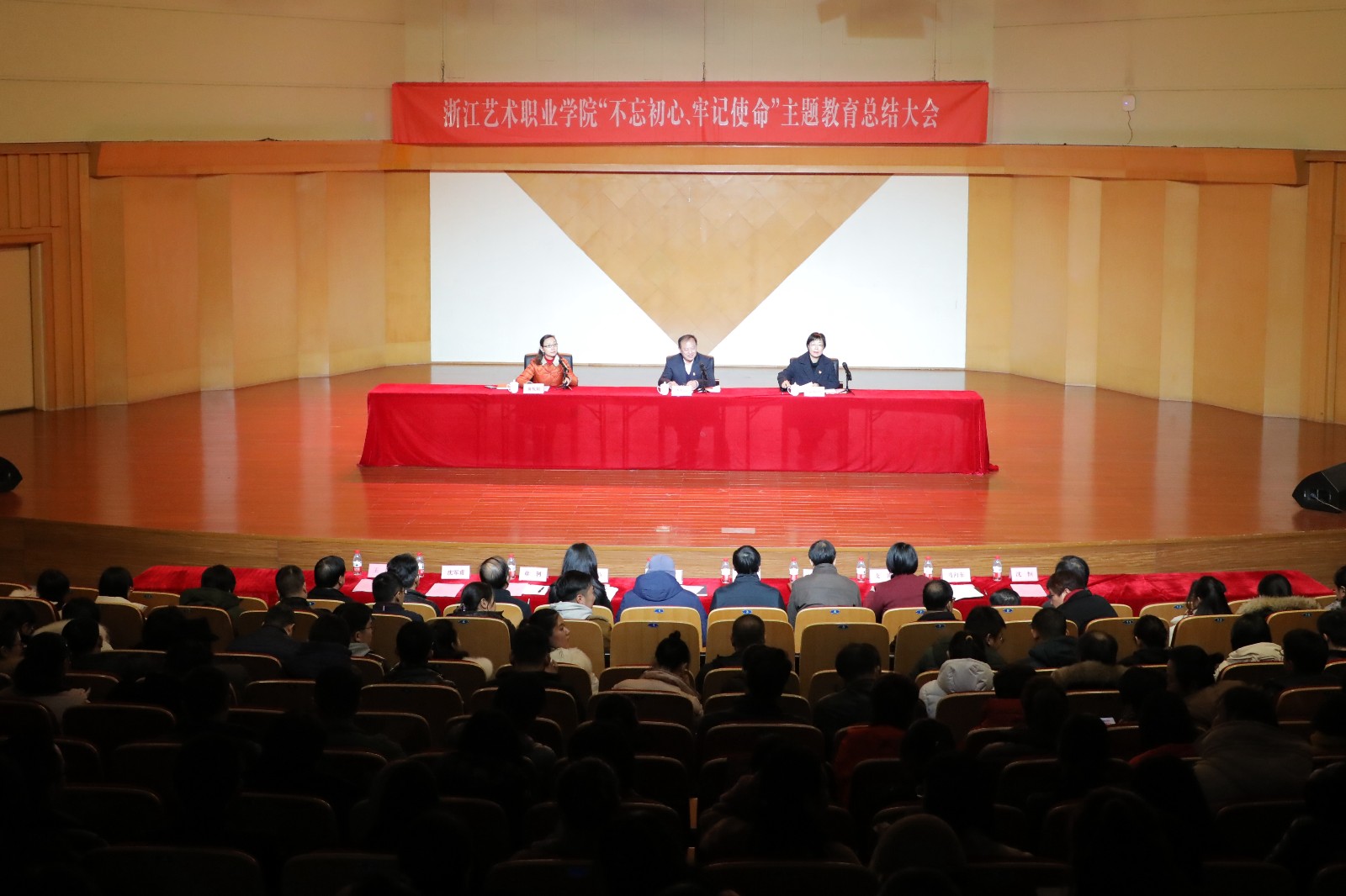1月10日下午,浙江艺术职业学院“不忘初心、牢记使命”主题教育总结大会在音乐厅召开。会议深入学习贯彻中央和省委“不忘初心、牢记使命”主题教育总结大会重要精神,认真总结浙江艺术职业学院开展主题教育的经验与成效,对下一步巩固和拓展学校主题教育成果,持续推动“不忘初心、牢记使命”主题教育形成制度化、常态化作了部署。省委第十四巡回指导组组长、省公安厅原党委专职副书记、巡视员华乃强作指导讲话,校党委书记朱海闵作总结发言。大会由党委副书记、院长黄杭娟主持。