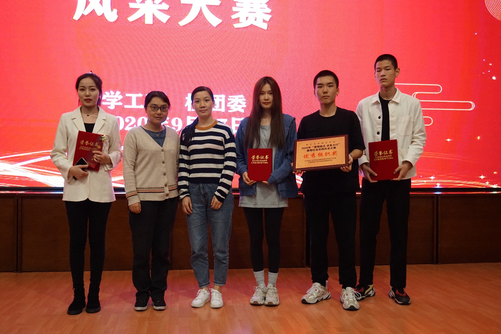 为深入学习贯彻习近平新时代中国特色社会主义思想,特别是习近平总书记关于青年工作的重要思想,引领我校广大青年学生了解国情民情,校党委学工部、校团委在今年7至9月组织开展了2020年暑期社会实践活动,为进一步扩大暑期实践育人成效,充分发挥实践育人在青年学生思想政治引领工作中的重要作用,9月27日,“爱国励志 求真力行”2020暑期社会实践风采大赛在图信中心报告厅举行,来自7个院(系)的9支队伍参加展示。校党委委员、宣传部部长马向东出席,张志扬、许瑛、谢志勇、顾才铭、王筱芽、金银琴等各系部党组织负责同志参加活动。