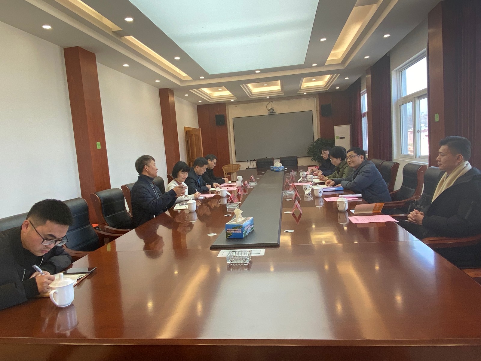 在仙居县横溪镇政府,省文旅厅人事处处长胡雁主持召开农村工作指导员座谈会。仙居县政府、横溪镇党委、仙居县文广旅体局相关领导参加座谈会。会上,省文旅厅选派的第十一批农村工作指导员颉顺虎汇报了派驻以来的思想工作和心得体会。仙居县副县长周慧忠、横溪镇党委书记柯森伟分别对颉顺虎同志两年来工作给予肯定。他们表示,颉顺虎同志扎根垟庄村,与村委班子一起,利用自身优势和派驻系统资源,切实为村民办实事,如助力杨梅产业链增产增收、杜鹃花旅游节庆举办及其产业链延伸、创评3A景区村庄等工作,给垟庄村带去了翻天覆地的变化,表现出了高校青年教师良好的思想品德和综合素养。同时,希望省文旅厅和浙江艺术职业学院能继续帮扶支持仙居各项事业的建设和发展。浙江艺术职业学院党委副书记夏开堂对仙居县、横溪镇党委政府及仙居县文广旅体局两年来从工作、生活上对颉顺虎同志的关心和指导表示感谢,对青年教职工在基层农村锻炼成长、有所作为表示欣慰。同时,表达了学院与仙居县深入开展校地合作的意愿。