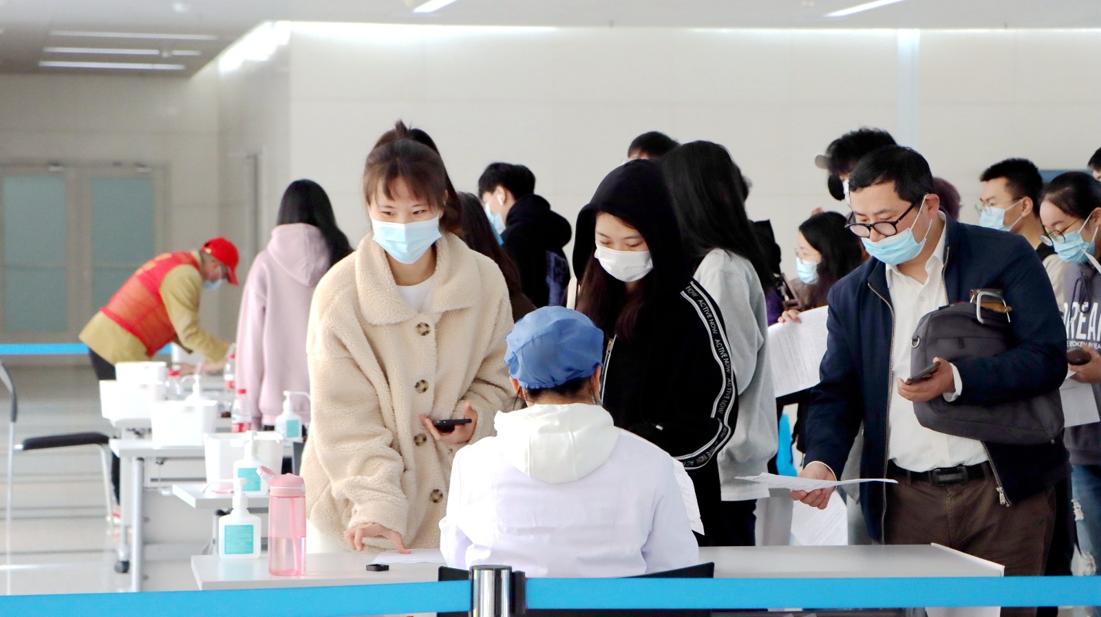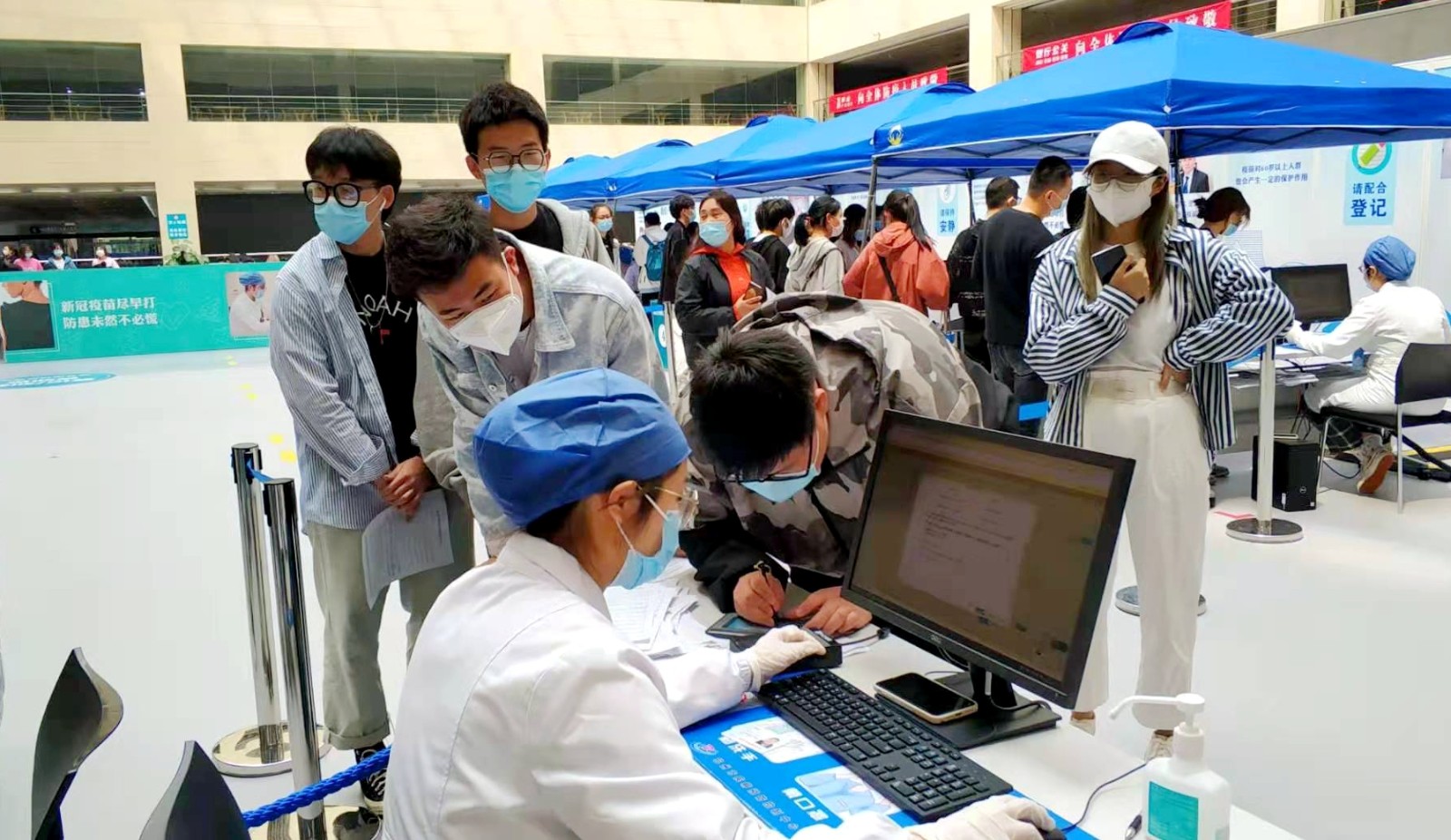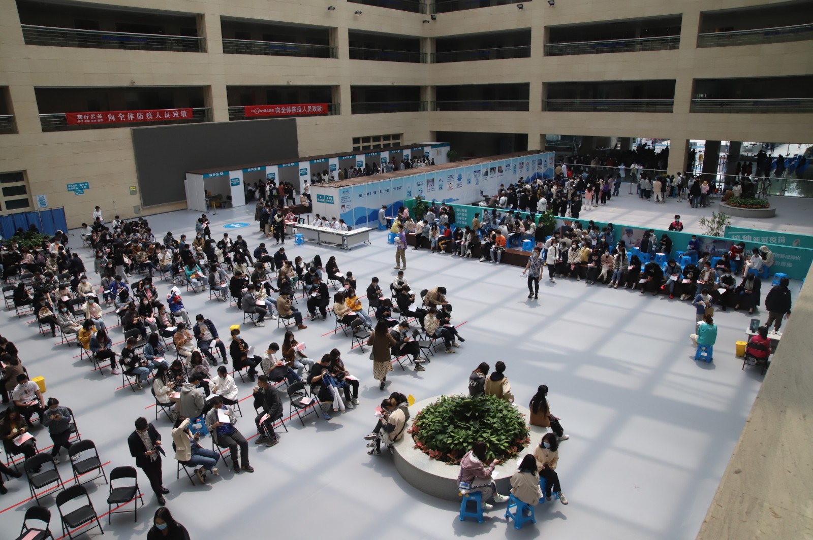 继4月9日第一批浙艺师生接种疫苗后,今天,全校各系师生、职能部门教职工分批来到滨江区浦沿街道卫生服务中心方舱临时接种点接种疫苗。